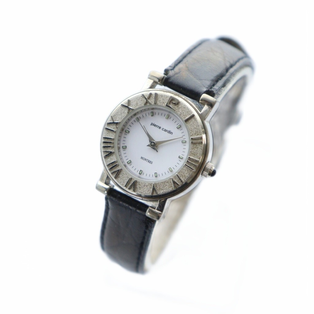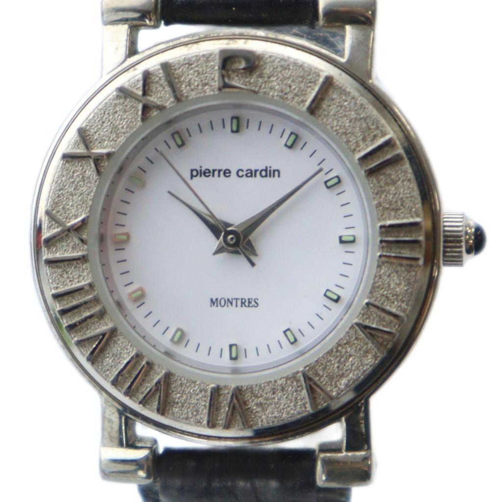 ピエールカルダン Pierre Cardin 腕時計 ウォッチ クォーツ 白文字盤 ロゴ ローマン ラウンド レザーベルト シルバー色 ■GY18