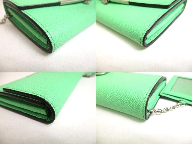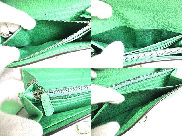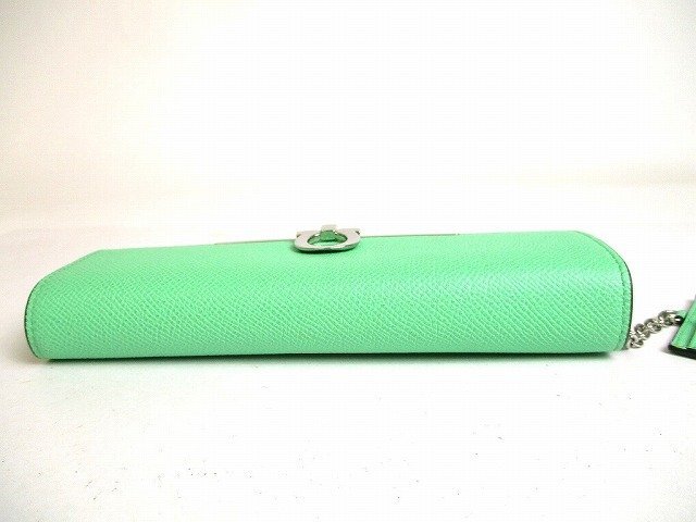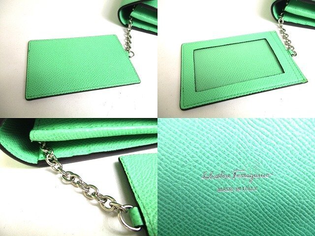 a407 【未使用保管品】 Salvatore Ferragamo サルバトーレ フェラガモ ガンチーニ レザー シルバー金具 2つ折り 長財布 ロングウォレット 未使用保管品の為とても綺麗なお品です(新品同様の状態ですが、未開封の新品ではないので一見わかりにくい些細な傷や汚れは御了承くださいませ。) 【ブランド】Salvatore Ferragamo 【カラー】ライトグリーン 【素材】レザー 【サイズ】幅:約18.5cm 高さ:約9.5cm 奥行き:約3cm ※あくまでも実寸なので多少の誤差はあるかもしれませんのでご了承ください。 【参考定価】99,000円 【製造刻印】- 【型番】22D150 【機能】札入れ×2、小銭入れ×1、カード入れ×10、ポケット×2 【付属品】パスケース、箱 【商品状態 】A ランク |