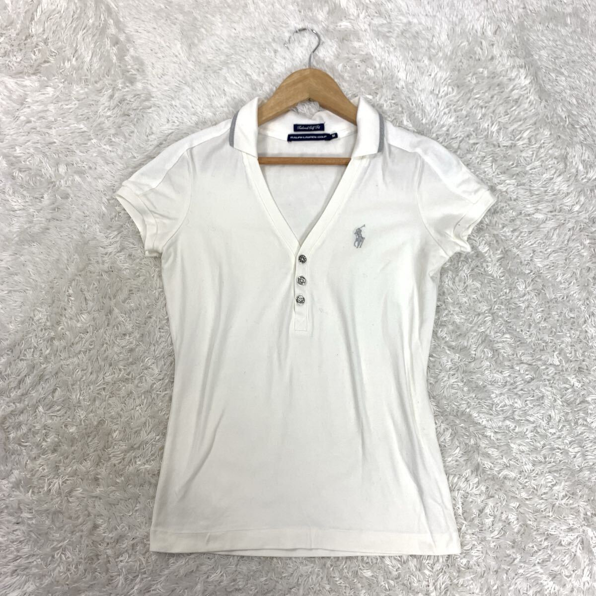 RALPH LAUREN GOLF ラルフローレンゴルフ 半袖ポロシャツ 半袖シャツ 半袖トップス 刺繍ロゴ ホワイトコットン ナイロン M YA224