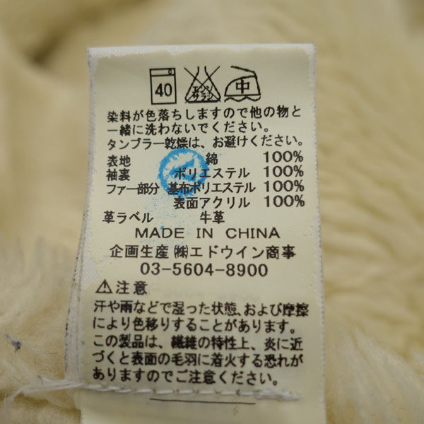 表:綿 袖裏:ポリエステル ファー:基布/ポリエステル・表面/アクリル 革ラベル:牛革 |