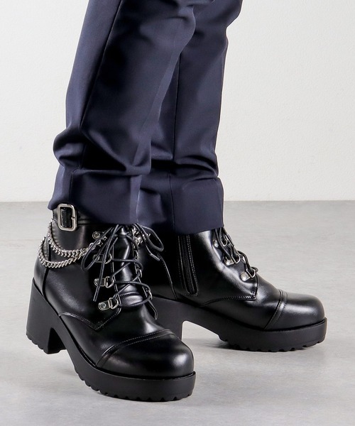 キーワード:ブーツ メンズ Uチップ Vチップ ショート ハイヒール 厚底 紐 秋 冬