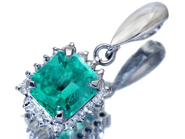 爽やかなエメラルドグリーン煌く良質天然エメラルド1.00ct&ダイヤモンド総計0.13ctを素敵に宝飾した、高級Pt900ペンダントヘッドを1円から特別大放出致します!