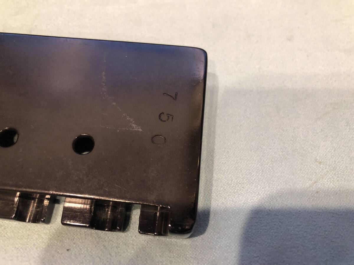 裏面に「.750」の刻印がありますので、弦間約19mmです。