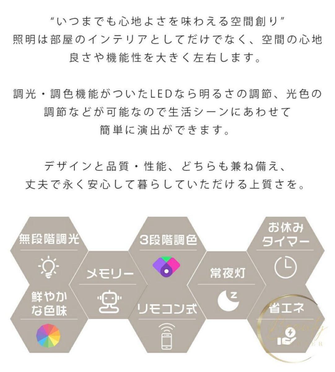 ■特徴LED/調光/調色常夜灯モードタイマー機能メモリ機能(60cmのみ)省エネ特徴【リモコンで簡単操作】全ての年代に使いやすい、シンプルなリモコンです。明るさ調節、暖色へ変更、常夜灯、など簡単に調節可能。【おやすみタイマー】15分、30分後に設定すると、次第に暗くなり消灯します。【電気代がお得】家の照明をLEDに換えるだけで効果的な節電につながります。複数の照明器具をLEDに換えれば、さらに省エネに。【高品質なLEDチップ】光源が部屋全体に均等に配光されるため、快適な照明が得られます。【取付簡単】工事が不要で、今お使いのシーリングライトから取り 付けアダプターなしで付け替えが簡単にできます。【LEDならではの高性能】・長寿命:一度設置したら約10年間交換不要。(※寿命は光束が70%に低下するまでの時間です。表示は設計寿命であり、製品の寿命を保証するものではありません。)・虫が寄りつきにくい:LED光源は虫が集まりやすい、紫外線領域波長をほとんど出しません。注意事項●LED光源など部品の交換はできません。●LED光源にはバラツキがあるため、同じ型名の商品であっても発光色、明るさが異なる場合がありますのでご了承ください。●仕様などは改善・改良のため、予告なく変更することがあります。●ご使用の前に、取扱説明書をよくお読みの上、正しくお使いください。●取扱説明書に使用されているイラストと実際の商品は一部異なる場合があります。こんな場所にお使いいただけます>キッチンライト インテリア インテリア照明 リビング 居間 キッチン 台所 ダイニング 食卓 カウンター カウンターキッチン 廊下 トイレ 洗面所 玄関 内玄関 エントランス ウォークインクローゼット クローセット 吹き抜け 子供部屋 書斎 デスク 階段 寝室 ベッドルーム 洋室 和室