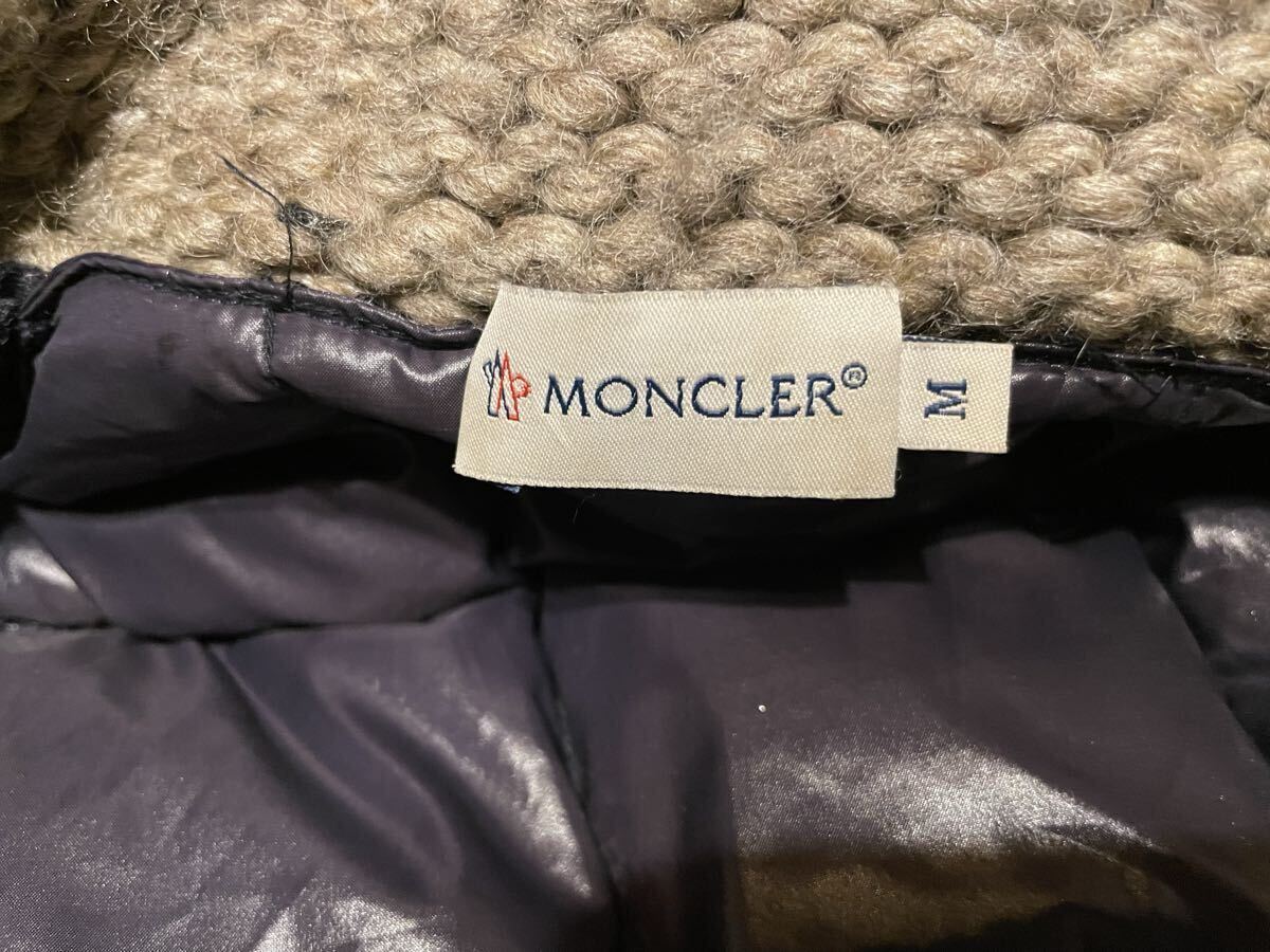 商品の具体的な状態ですが、通常のシャイニーナイロン素材のモンクレールと比較は出来ませんが十分に綺麗な状態と言えると思います。背面のダウン部分のシャイニーナイロン生地には十分ツヤもあって綺麗な状態ですし、使用感も少なめですのでニット部分にも引っかけた跡や穴空き、汚れ等も当然ながらございません。元々のニット素材の特性上出来やすいちょっとした毛のかたまり(小さな毛玉等ではございません)も少なめとなっており十分ご満足いただける商品と思います。ただ、以上のような状態ではございますが、あくまでも実際使用した中古品です。新品あるいは未使用品レベルの物をお考えの方購入お控え下さい。
