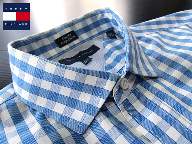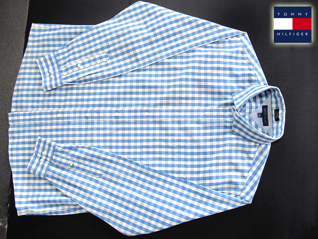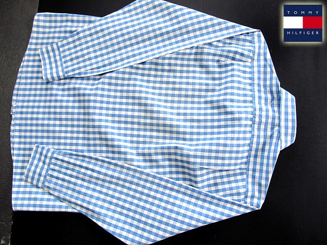 ★500円スタート!トミーヒルフィガー TOMMY HILFIGER ワイドスプレットシャツ 長袖 Lサイズ 希少品 ハンサムチェック ブルー×ホワイト