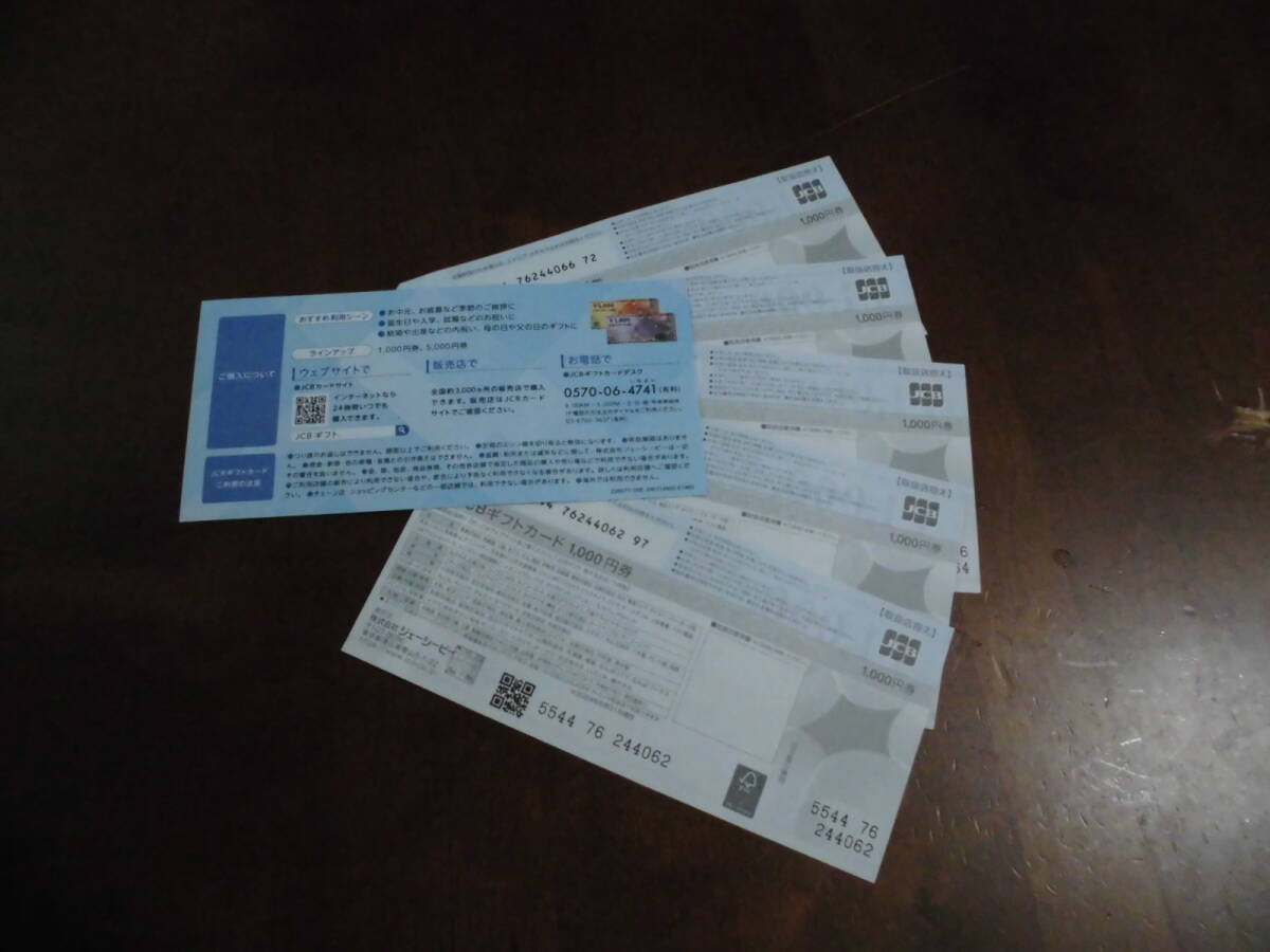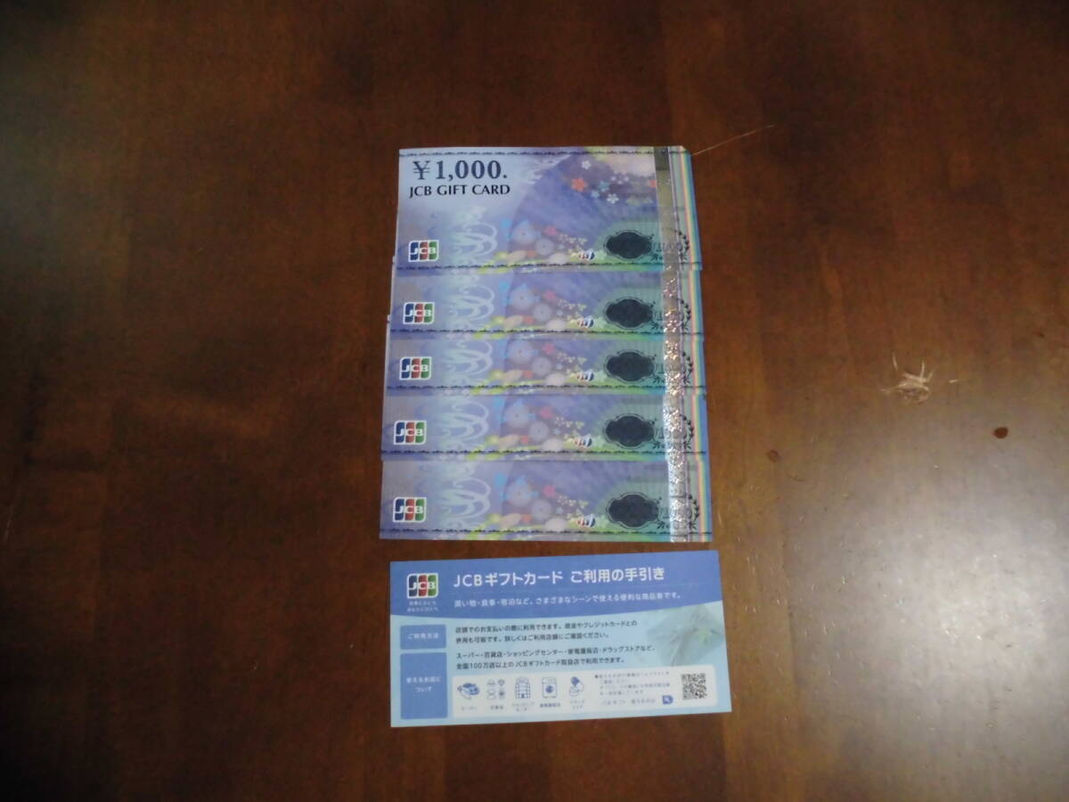 JCBのギフトカード 1,000円券×5枚の計5,000円分となります。