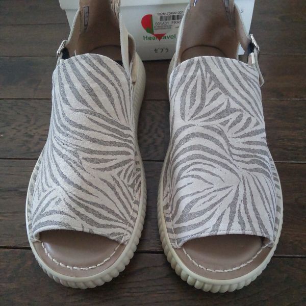 JSハートレーベル <日本製> 姫路レザー ふんわり包まれる 軽量オープントゥサンダル(ゼブラ柄)です。