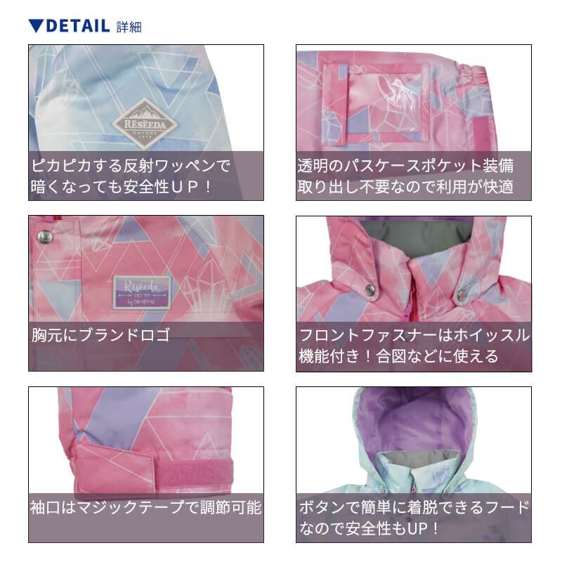 詳細 | 【商品詳細】 人気ナンバーワンのグラデーション柄に宝石モチーフを追加しパワーアップ 【素材】 表地 ポリエステル100%(ポリウレタンコーティング加工) 裏地 ポリエステル100% 中わた ポリエステル100% 【仕様】 耐水圧 10,000mm 【機能】 【ジャケット】 フード取外し可能 襟裏トリコット あご部分トリコット 袖パスケース 袖口はマジックテープにて調節可能 ファスナーの不快なアタリを緩和します。 フロントファスナー フロントポケット 【パンツ】 パンツ裾エッジガード ブーツへの雪の侵入を防ぐインナースパッツ サスペンダー(取り外し不可) ウエストアジャスター 前ポケット2箇所 【カラー】 573Px699(EMExNVY):エメラルドxネイビー 661Px009(SAPxBLK):サファイアxブラック 850Px699(AMExNVY):アメジストxネイビー 973Px196(RBYxBEG):ルビーxベージュ 【サイズ】 130 140 150 160 |
