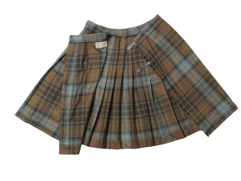 TI8984□スコットランド製 ヘクターラッセル/HECTOR RUSSELL Kiltmaker チェック柄 プリーツ キルトスカート ラップスカート 巻きスカート | |||