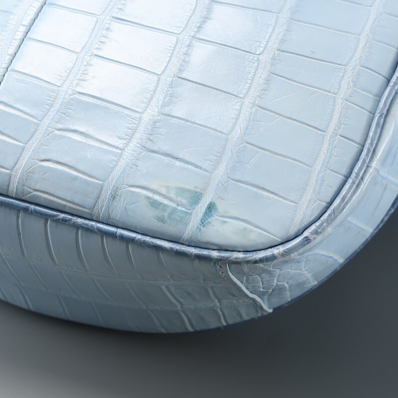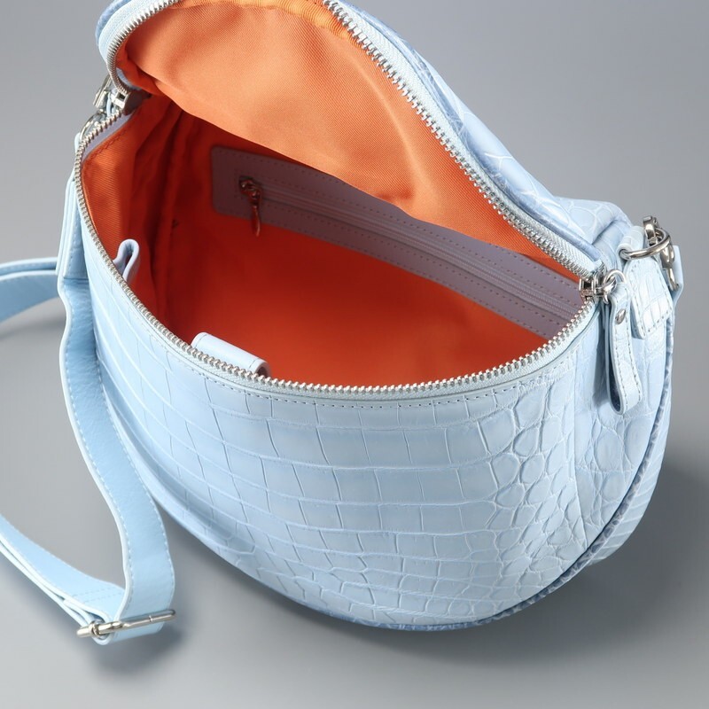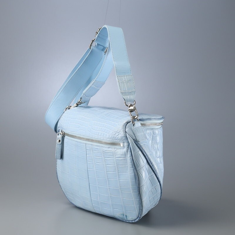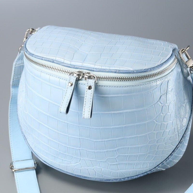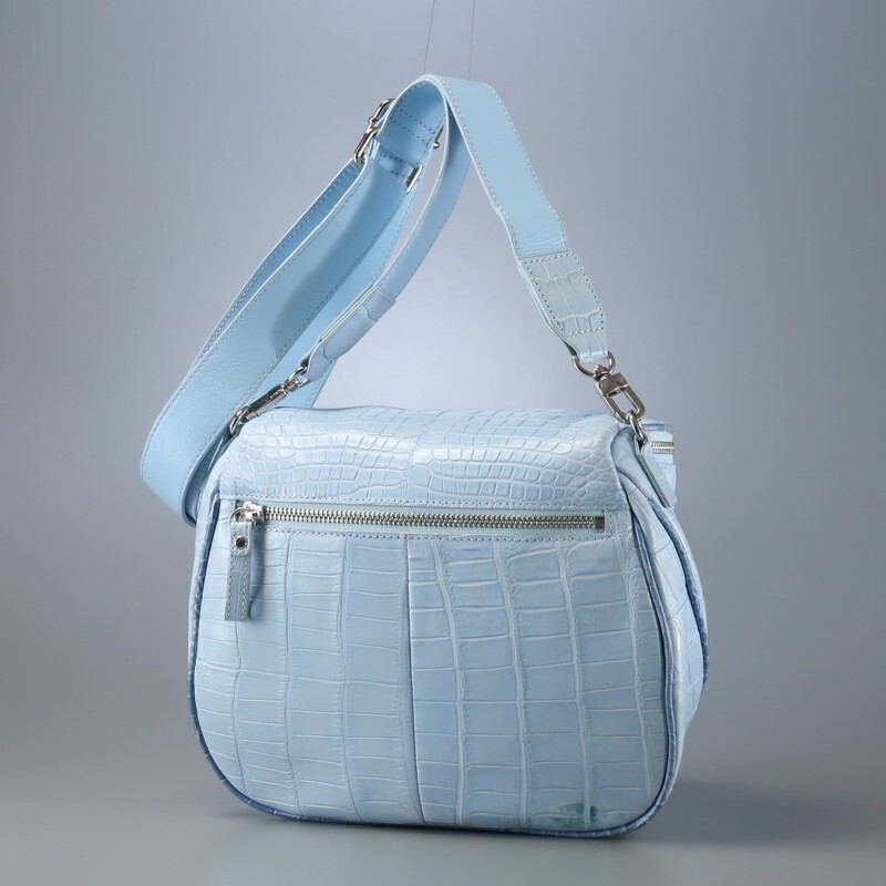RA5907△本クロコダイル/センター取り/ワニ革/マットクロコ レザーショルダーバッグ クロスボディバッグ ポシェット 鞄 ライトブルー | |||