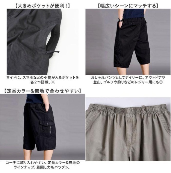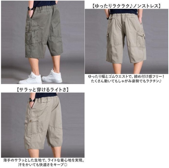 新品☆ハーフパンツ メンズ ゆったり ショートパンツ 七分丈 カーゴパンツ チャコール♪メンズXL