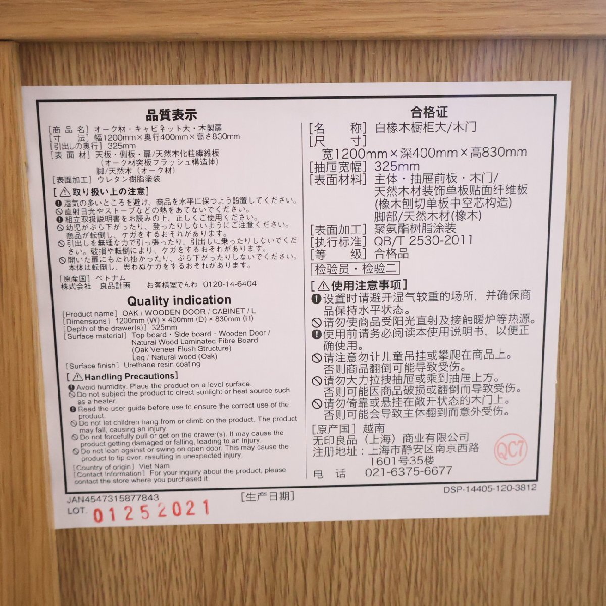 人気メーカー無印良品よりオーク材 キャビネット大・木製扉のご紹介です。