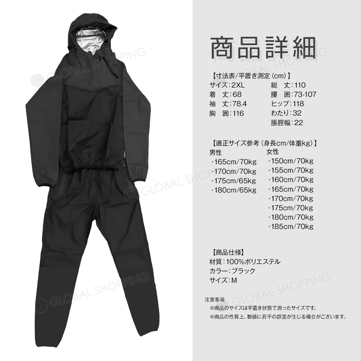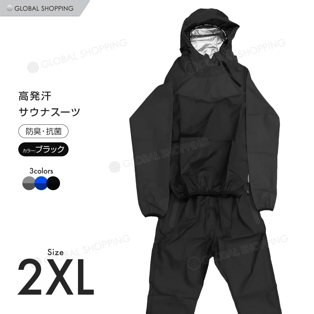 サウナスーツ ブラック 2XL メンズ レディース 男女兼用 スポーツ ウォーキング エクササイズ トレーニングウェア ダイエット 脂肪燃焼