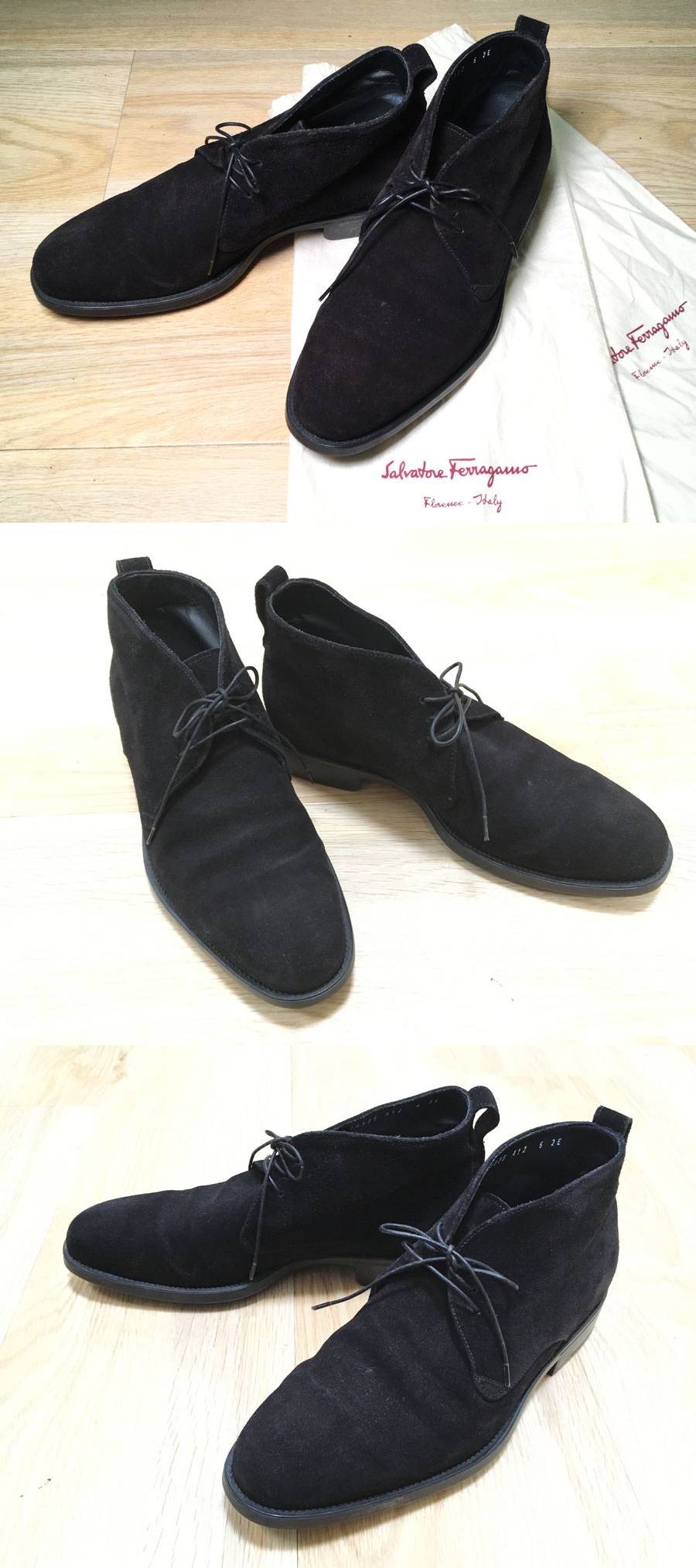 ●商品名 ◆良品!サルヴァトーレフェラガモ Salvatore Ferragamo チャッカブーツ スエード 保存袋付 ダークブラウン系 6 2E 約24.5cm メンズ シューズ