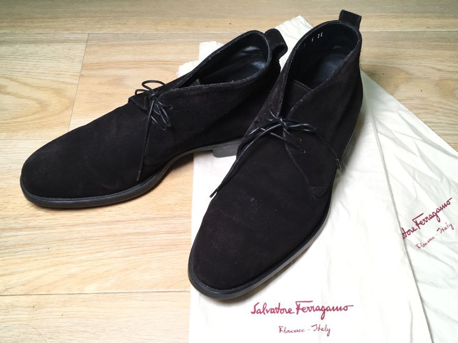 ◆良品!サルヴァトーレフェラガモ Salvatore Ferragamo チャッカブーツ スエード 保存袋付 ダークブラウン系 6 2E 約24.5cm メンズ