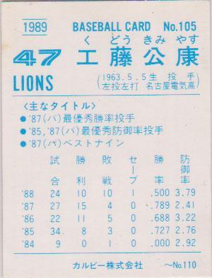 ★トレカ★1989年カルビー【#105 工藤公康】★