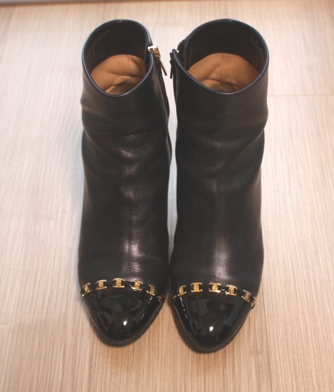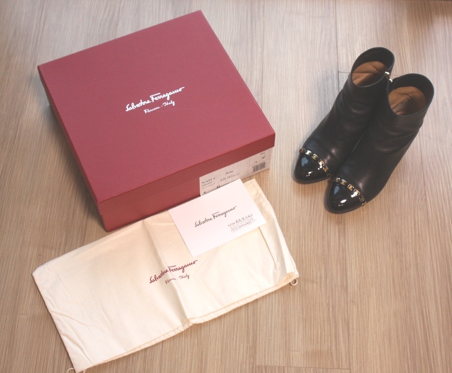 ★美品 サルバトーレフェラガモ FERRAGAMO Salvatore Ferragamo ショートブーツ 6 D カーフ レザー 黒(ブラック) 定番ヴァラ♪