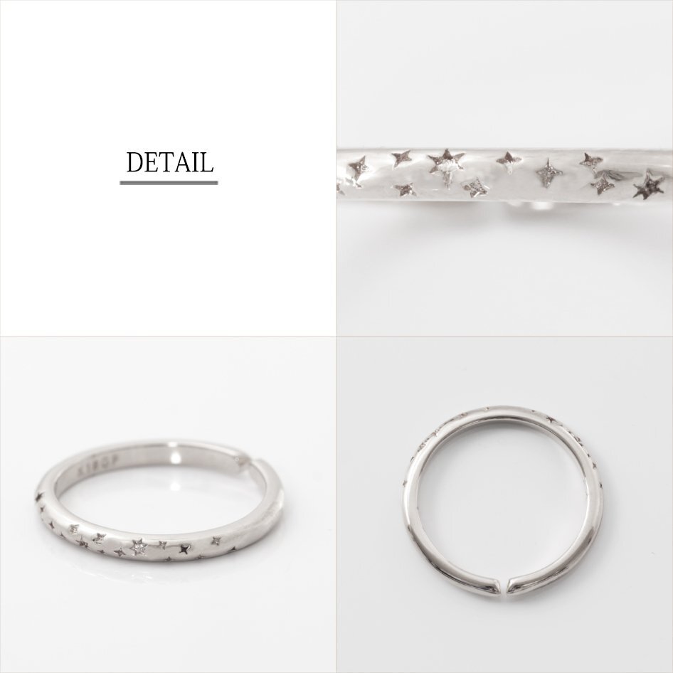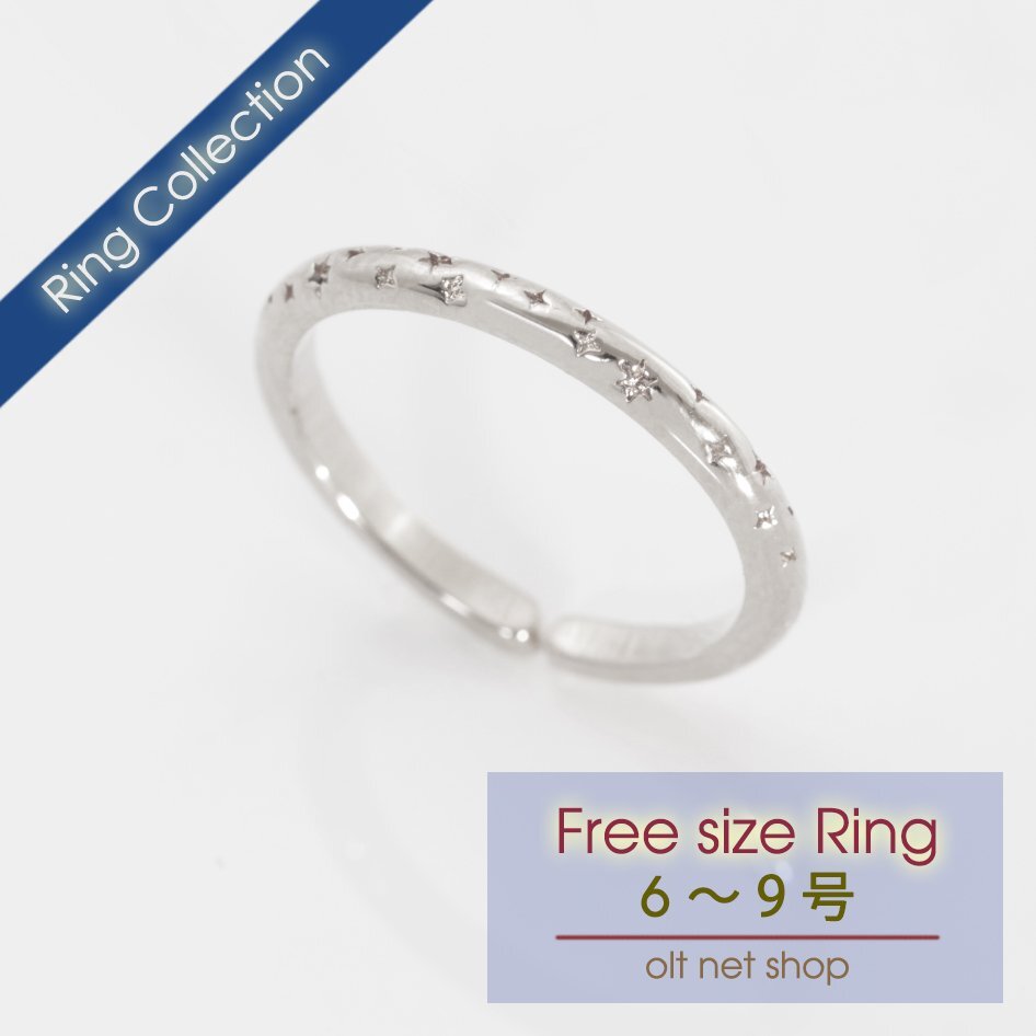 6号~9号 調整可能リング/ 新品 指輪 K18GP フリーサイズ 星彫り スター 細身 シルバー 18金 ホワイトゴールド レディース プレゼント 女性