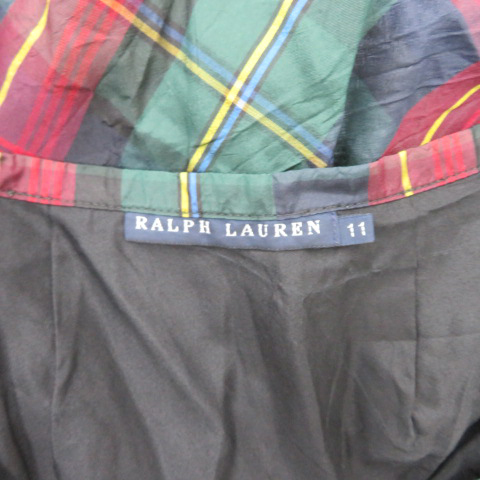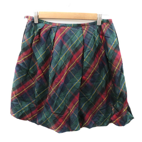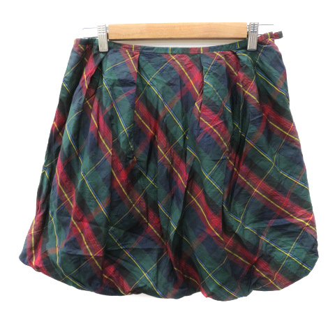 ラルフローレン RALPH LAUREN フレアスカート ギャザースカート ミニ丈 チェック柄 シルク 11 マルチカラー 緑 グリーン レディース