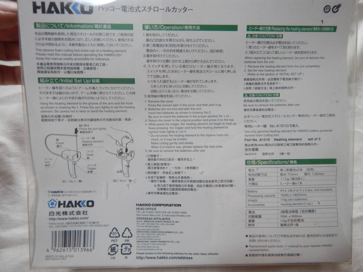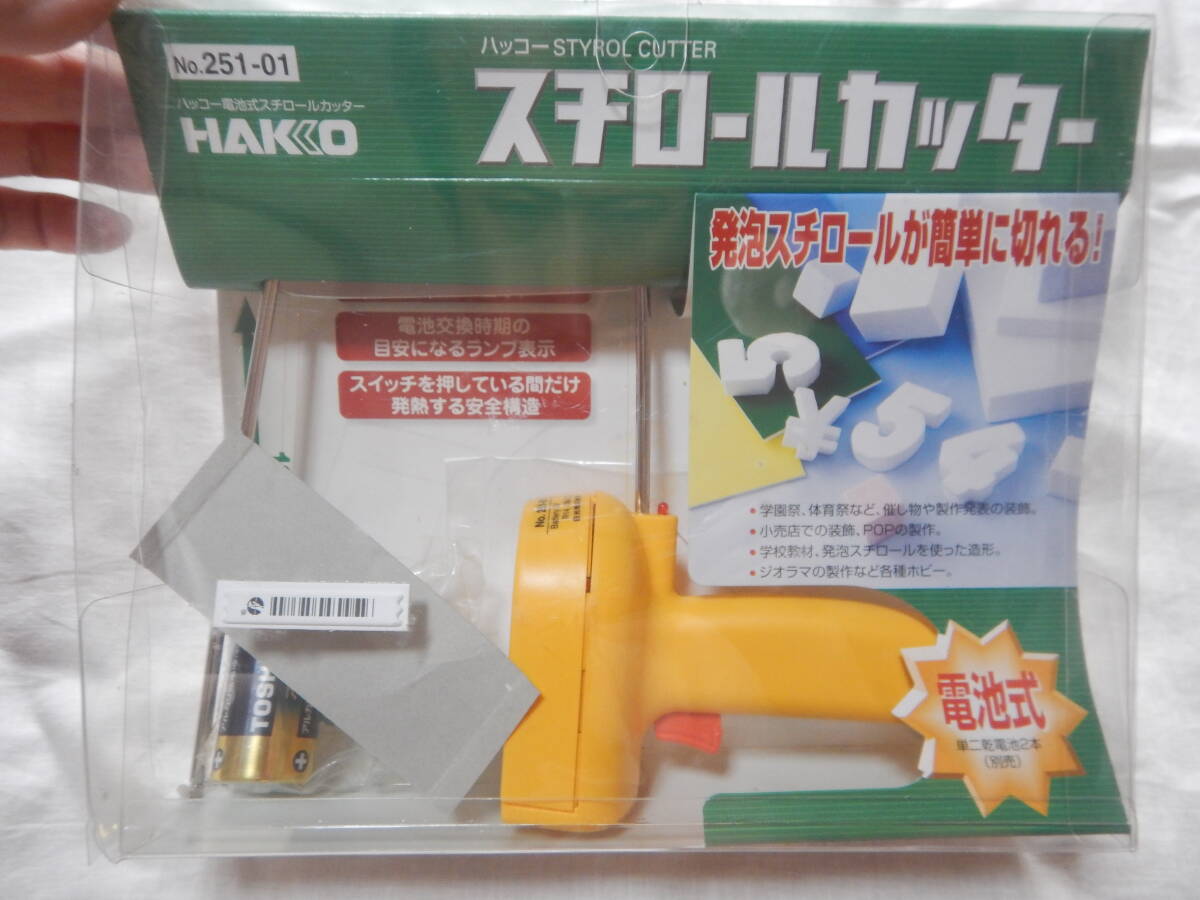 HAKKOの電池式発泡スチロールカッターです。 文字の切り抜き、店舗の装飾、学園祭、体育祭などの装飾、美術や図工、模型、ジオラマ製作などに使用できます。
