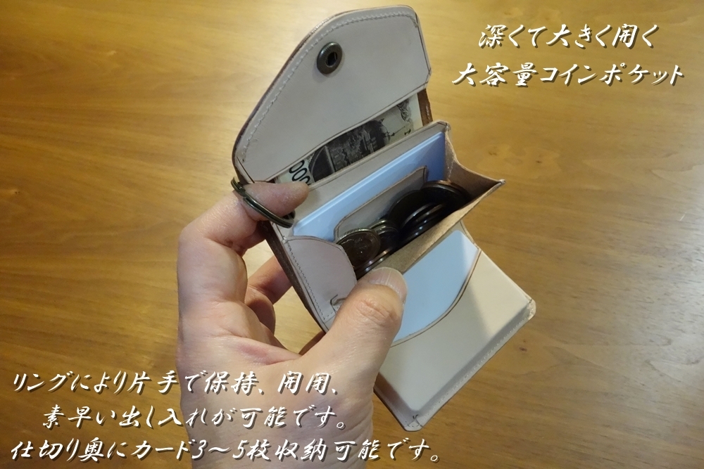◆リングミニウォレット◆高品質国産本牛革オイルドヌメ カスタムオーダー(リング、ホック、アイレット) 日本製 |