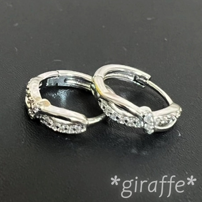 B414 匿名配送 リングピアス レディース シルバー ジルコニア フープピアス ノット 結び目