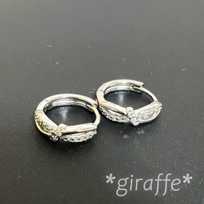 シンプルなフープピアスは使いやすく、輝くジルコニアが華やかで上品な雰囲気のアクセサリーです。