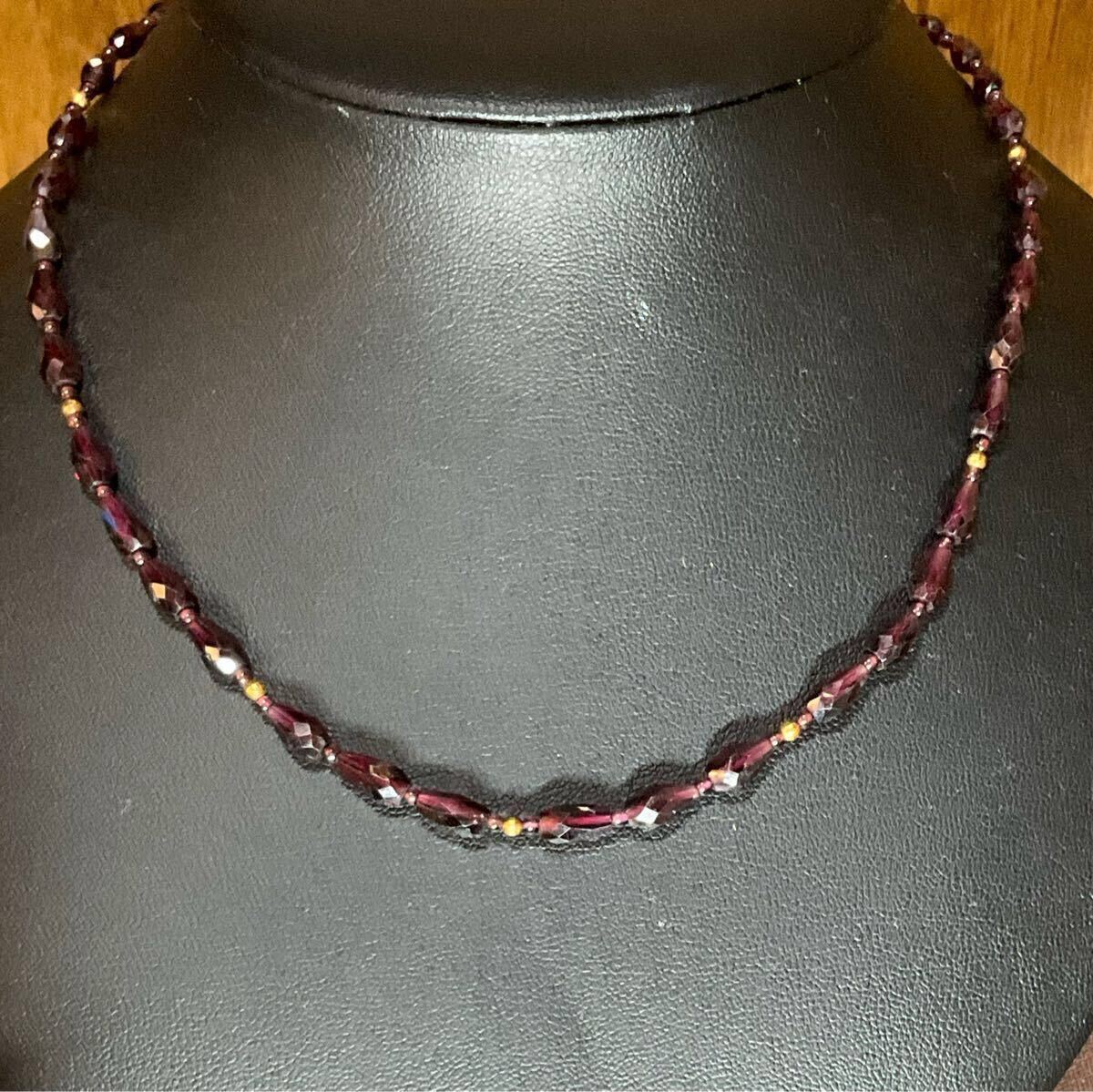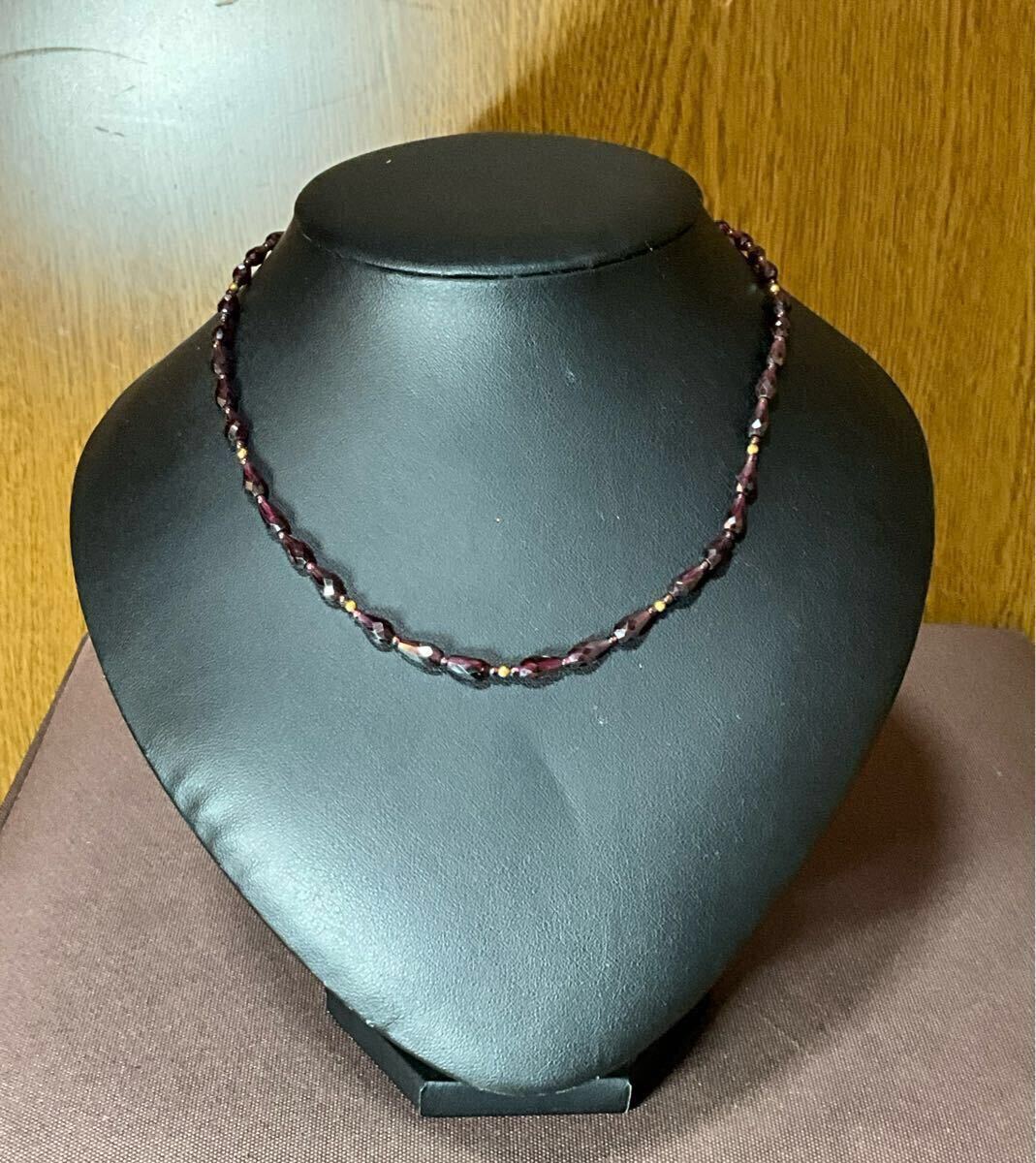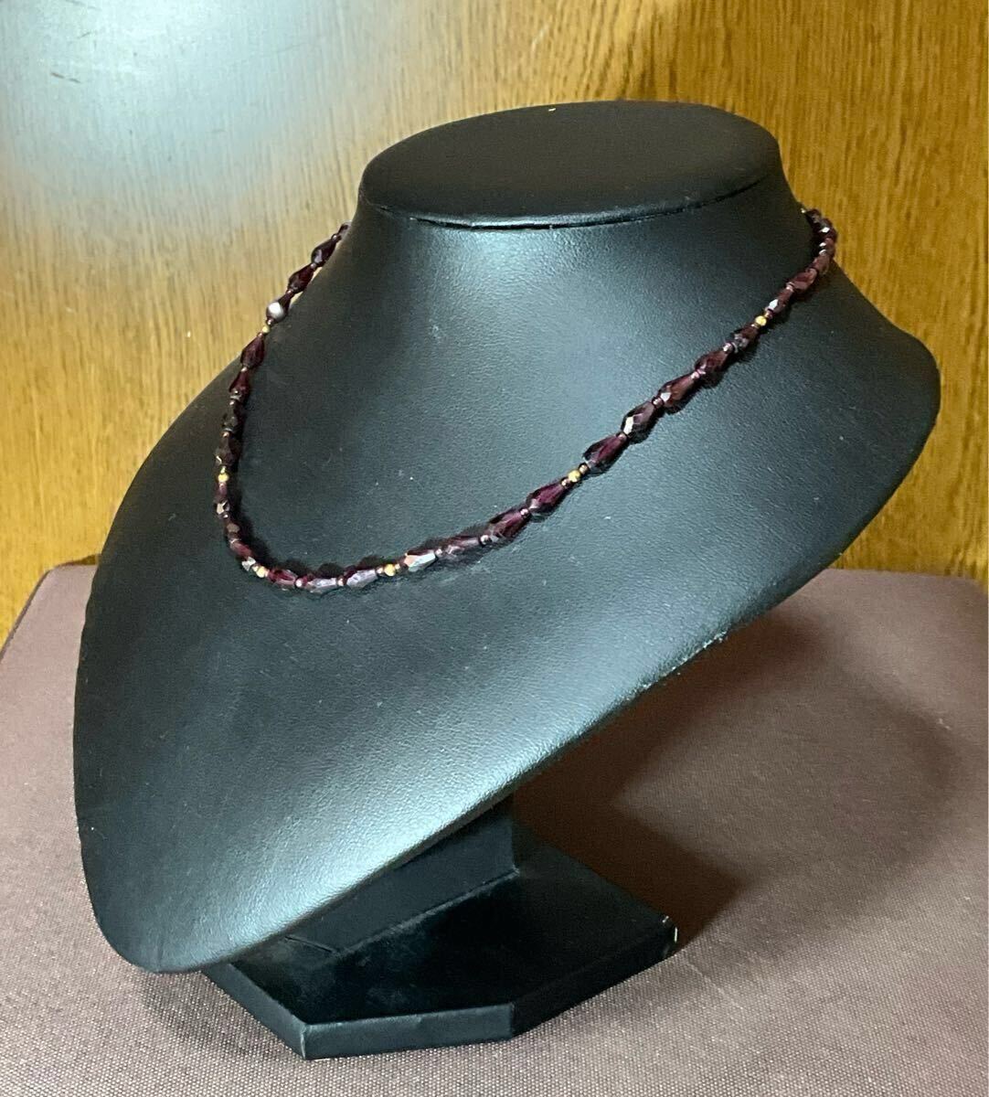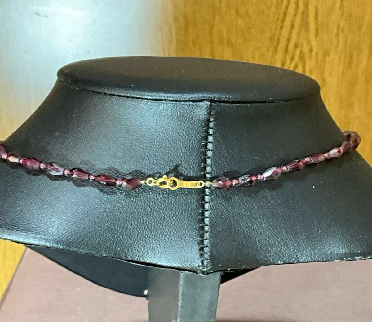 パープル系のネックレス ティアードロップカット状連 留め具等18金/引き輪 約40cm
