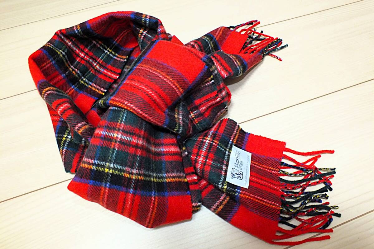 【Johnstons of Elgin】ジョンストンズ  *チェック スコットランド製 カシミヤ100% マフラー*美品