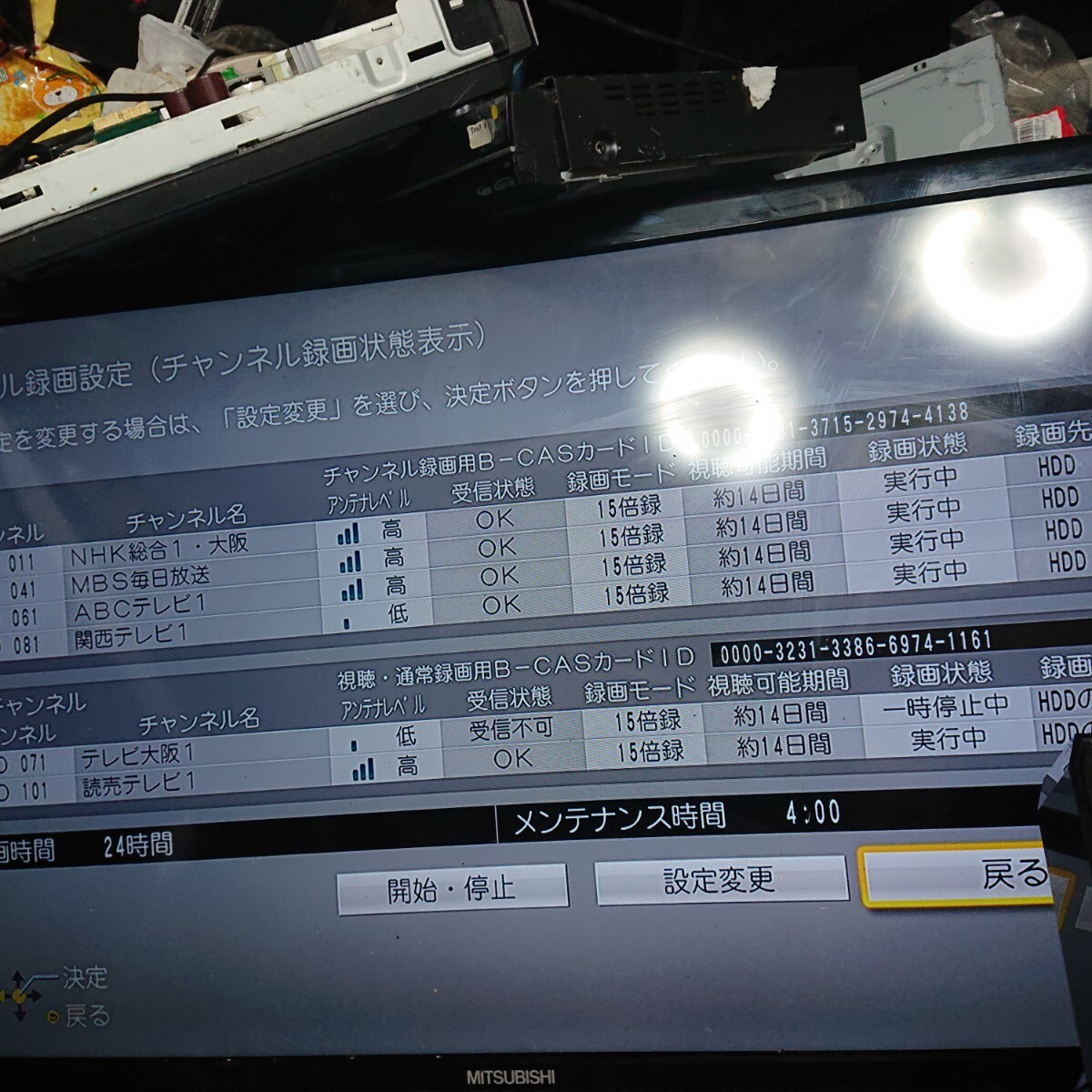 パナソニック全録画デッキ 中古美品です。HDD,BD、全録画機能、初期化、ダビング、再生、番組表共に基本動作確認済みです。念のため商品到着後、3週間の動作保証を個人的につけさせて頂きます。全録画のデッキは、過去番組表からさかのぼって、ダビングでき、連続番組等の録画の取りこぼしがなくなり、非常に便利です。全録画設定等わかる限りサポートさせて頂きます。付属品は、赤カード2枚、電源コード、リモコン(汎用品)が付属します。よろしくお願いいたします。