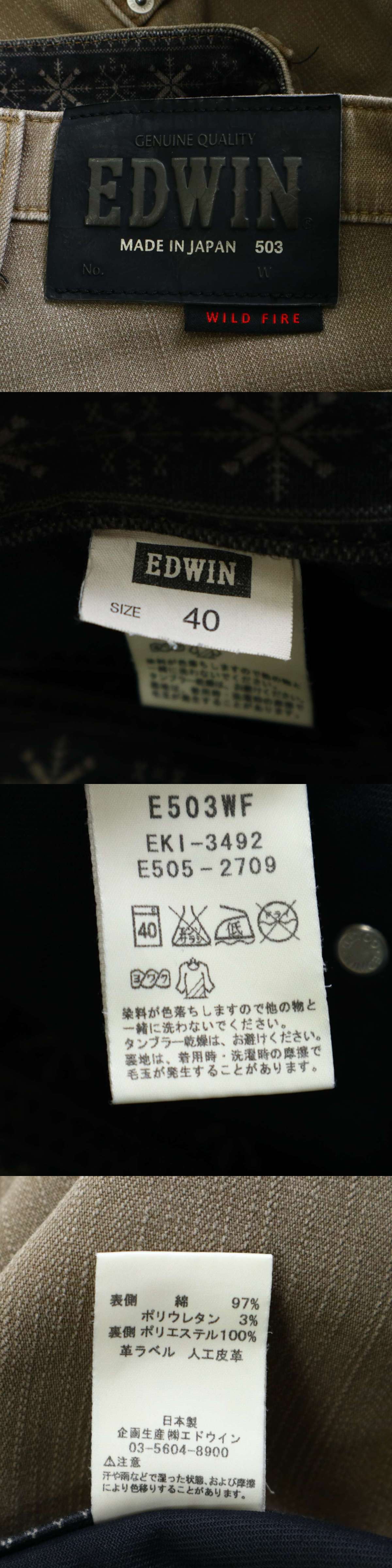 EDWIN エドウィン E503WF WILD FIRE★ 防風 裏起毛 ストレッチ デニム パンツ ジーンズ Sz.40 メンズ バイク 大きい 特大