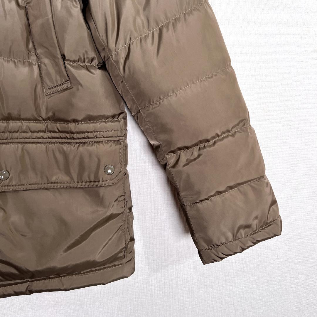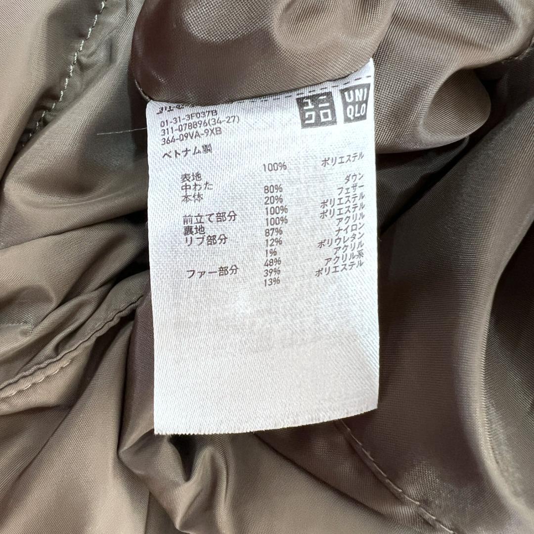 男性用のベージュブラウン系のフード着脱式のダウンジャケット アウター コート ブルゾン ジャンパーです。フードはありますが、ファーが欠品となりますので、普通のダウンジャケットとしてご使用ください。中古品ですが目立つような傷や汚れもなくまだまだ使っていただけます。古着 ユニクロ UNIQLO