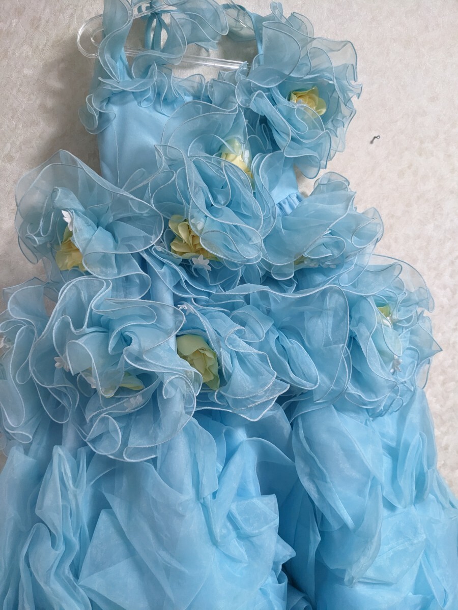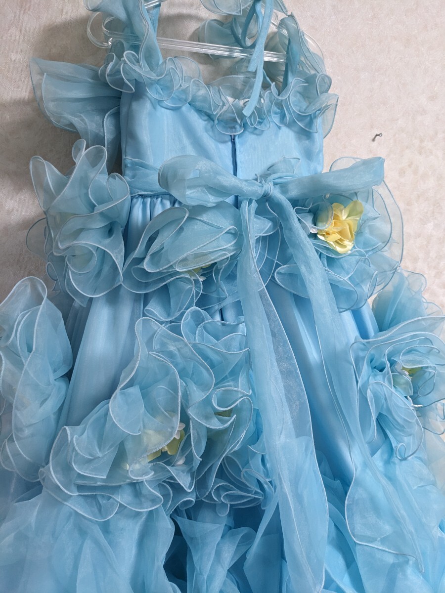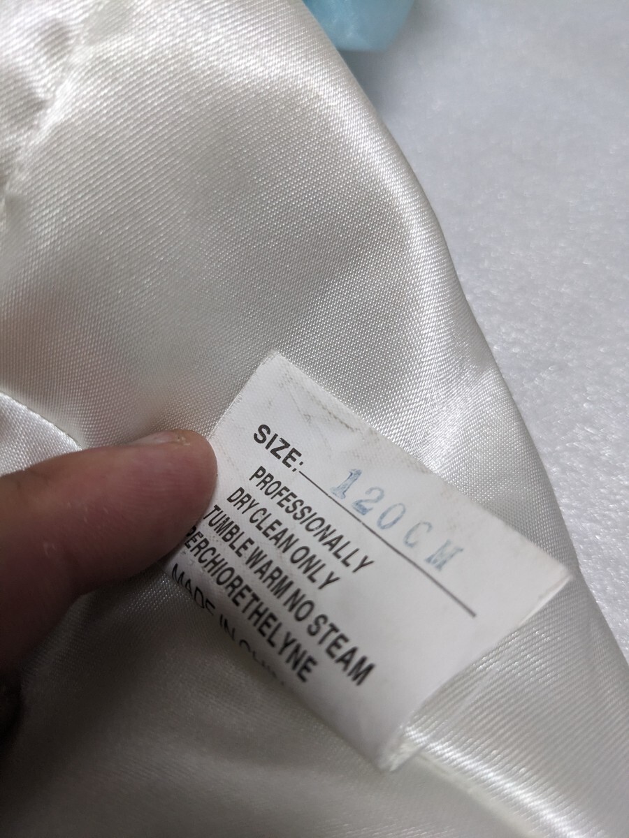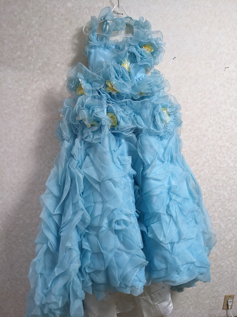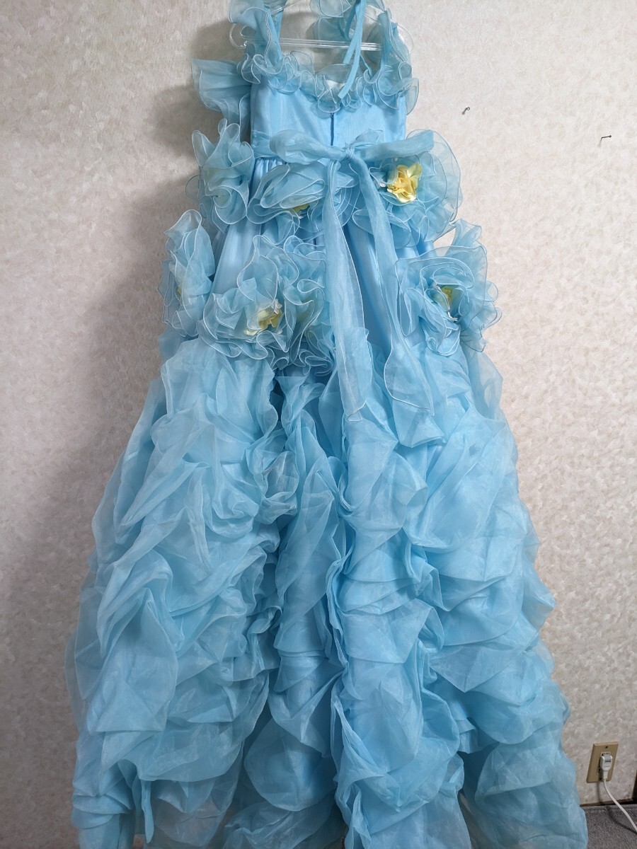 元々はモデルの女の子が七五三の撮影をする際に使用していた物です。着丈約160cm。120サイズと記載がありますが、120より大きく感じます。120〜140?わかりません。中古ですので相応の使用感あります。発送は佐川急便元払い