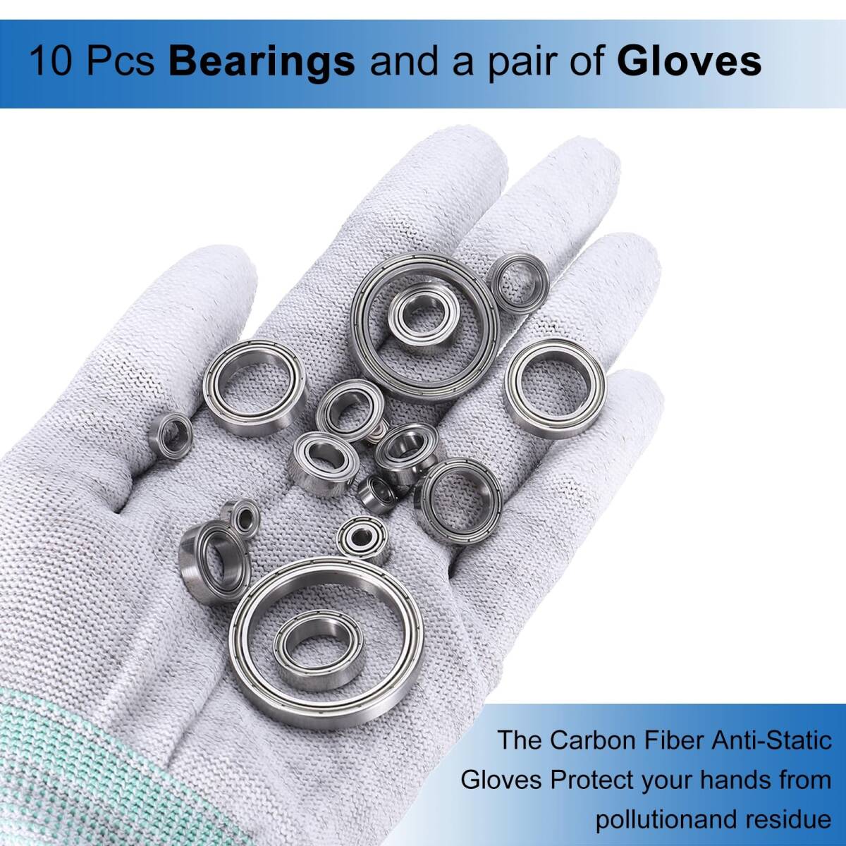 提供内容: 汚れや残留物から手を保護するカーボンファイバー指コーティンググローブ1ペアとディープグルーブボールベアリング10個が含まれます。内径(d): 5mm /0.2"; 外径(D): 9mm /0.4"; 厚さ(T): 3 mm / 1.2"; P0精度クラ ス。