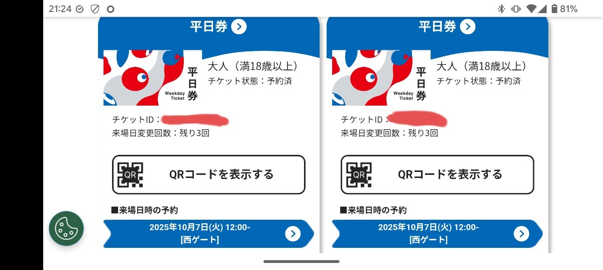 ※受取りには万博IDが必要です。ログインしてチケットをお受け取りください。