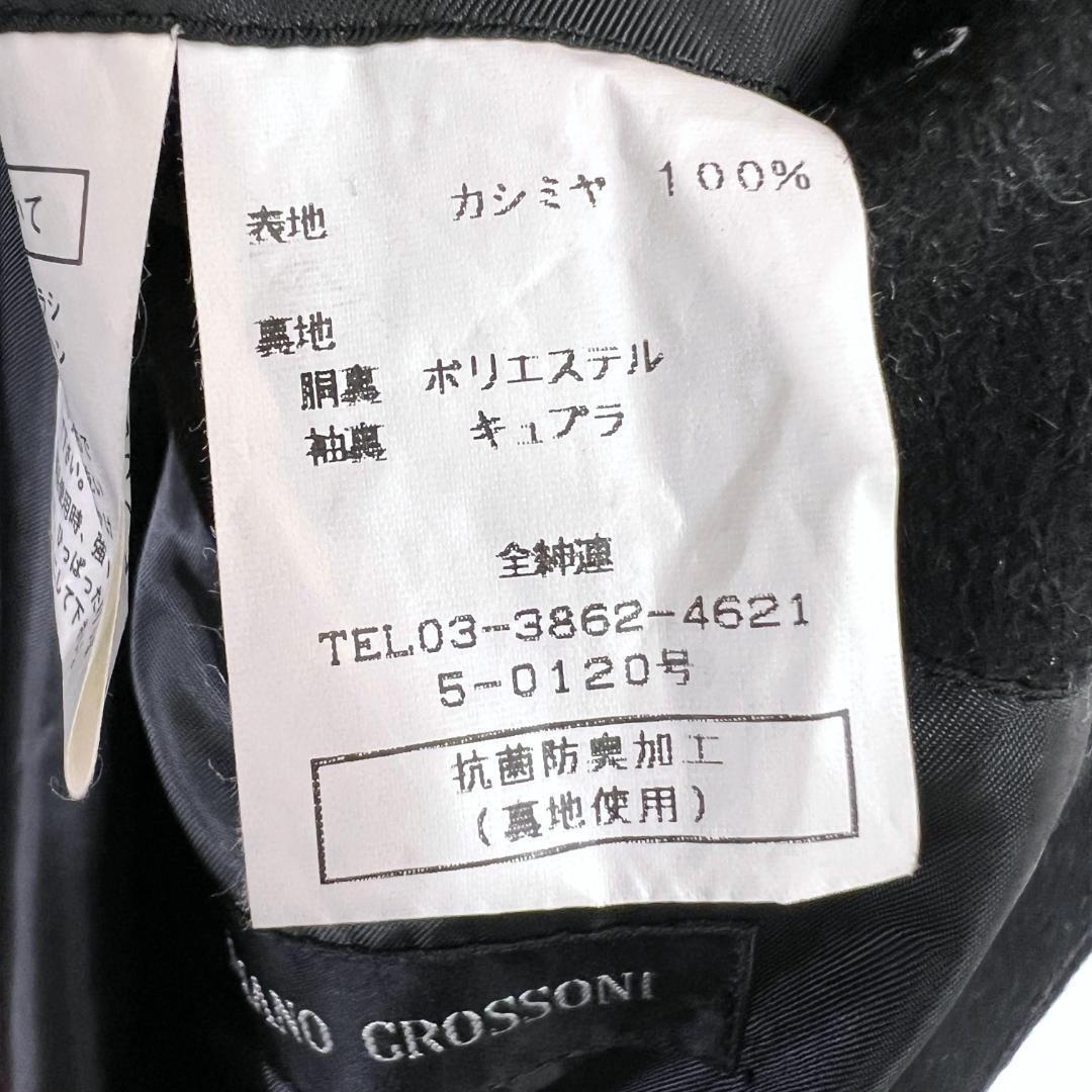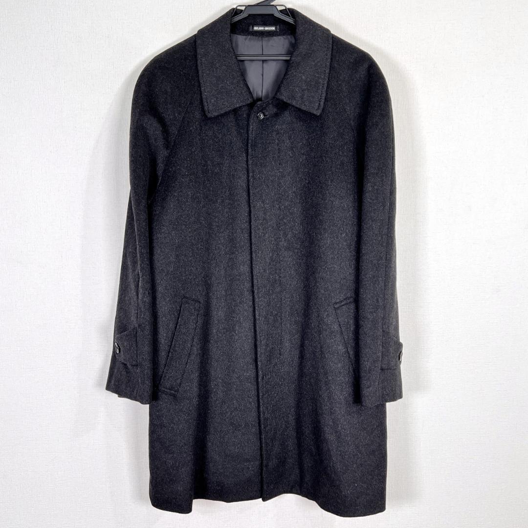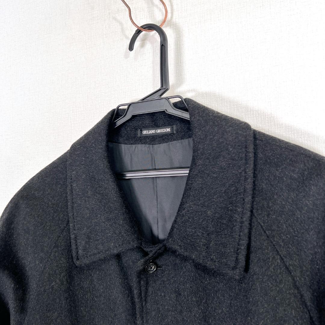 メンズの黒 ブラック系のカシミヤ100% チェスターコート ビジネスコート 紳士用 紳士服コート ジャケット アウターです。中古品ですが目立つような傷や汚れもなくまだまだ使っていただけます。古着 ジュリアーノグロッソーニ