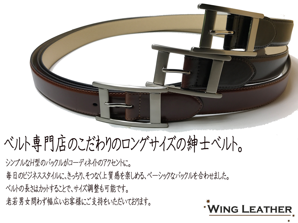 H型の少し大きめのバックルにスタイリッシュなシンプルなデザインのロングベルト!
