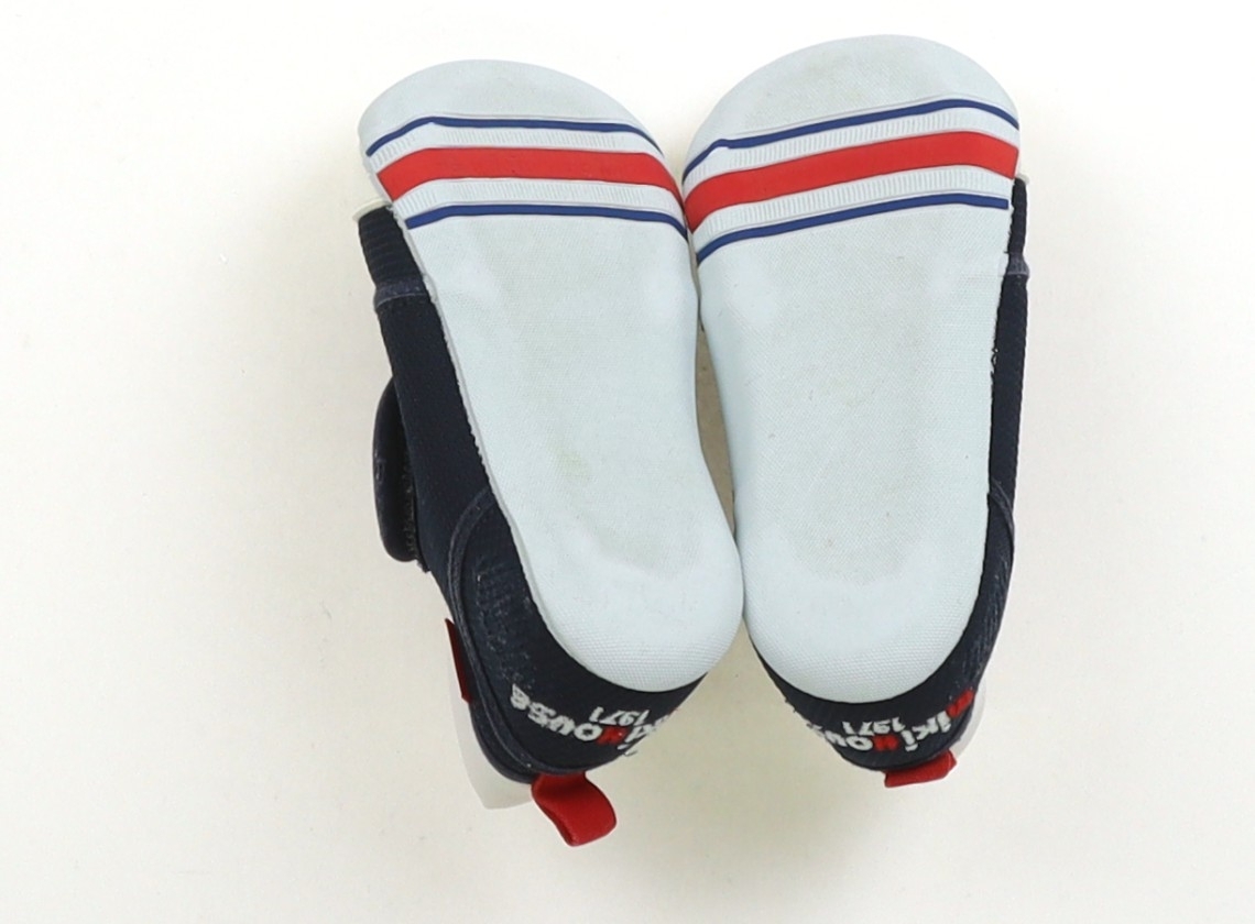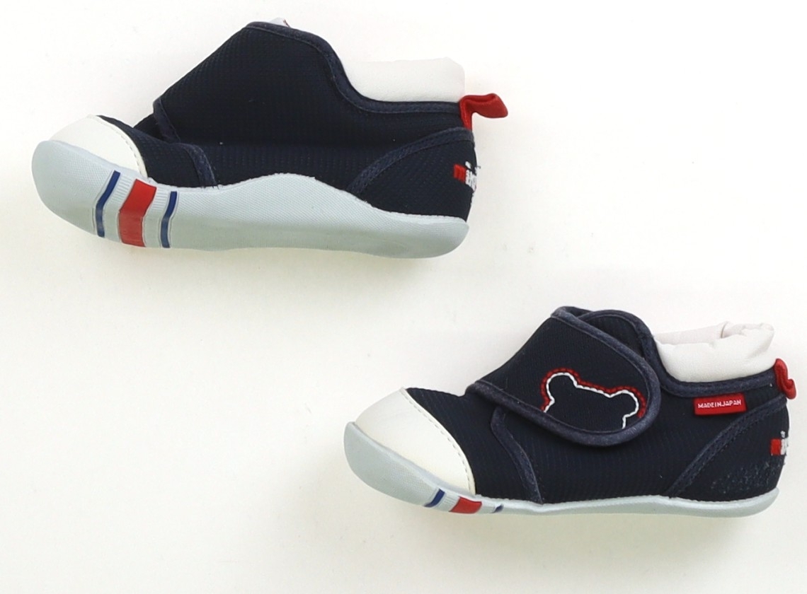 13cmです。端に色褪せと、両かかと付近に大きめの擦れあり。右のマジックテープの持ち手部分が擦れて、5mmほど破れています。