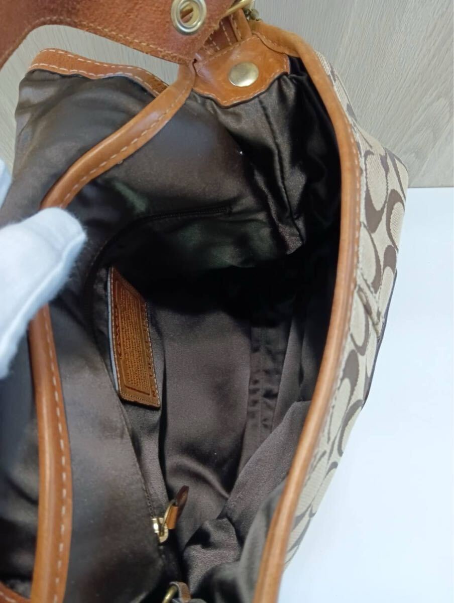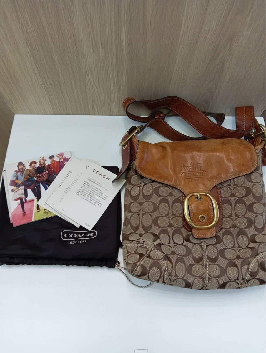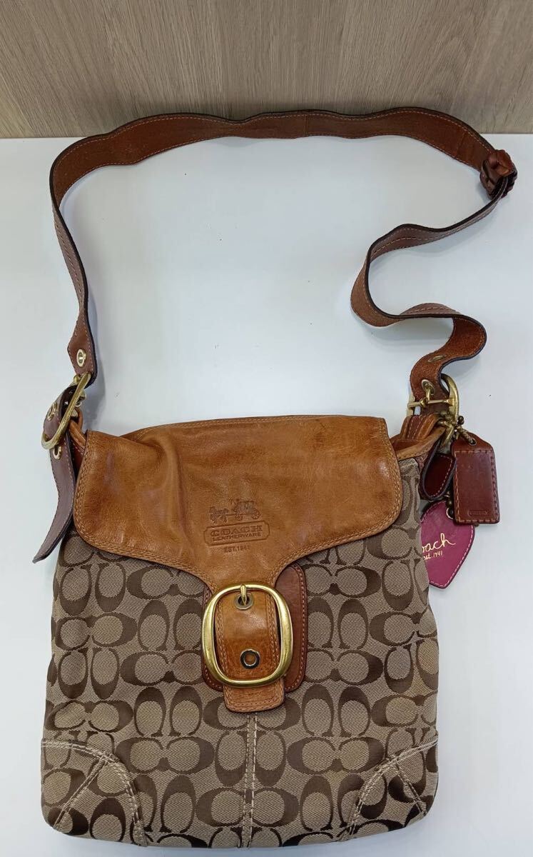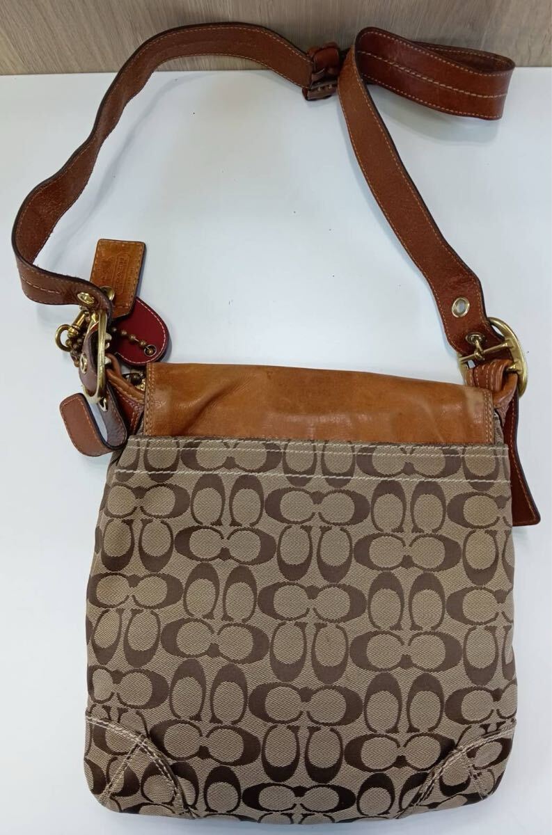 【中古品】 COACH コーチ ショルダーバッグ ブリーカー シグネチャー フラップダッフル キャンバス ブラウン ゴールド 現状品