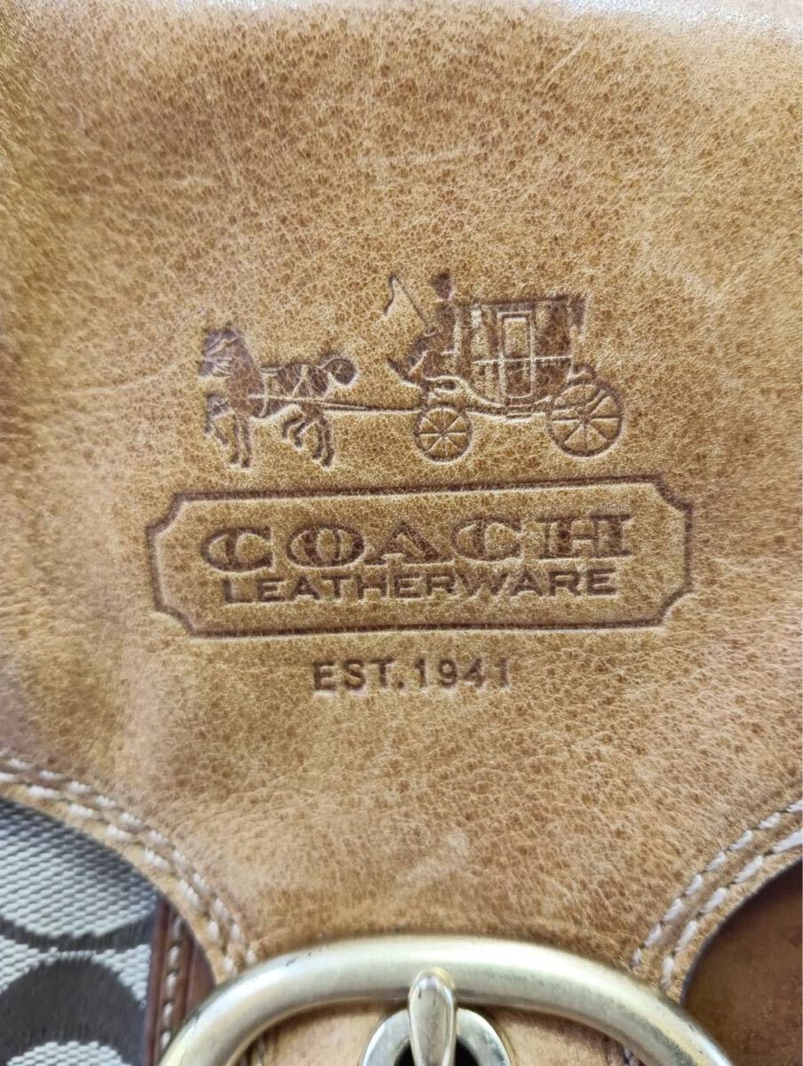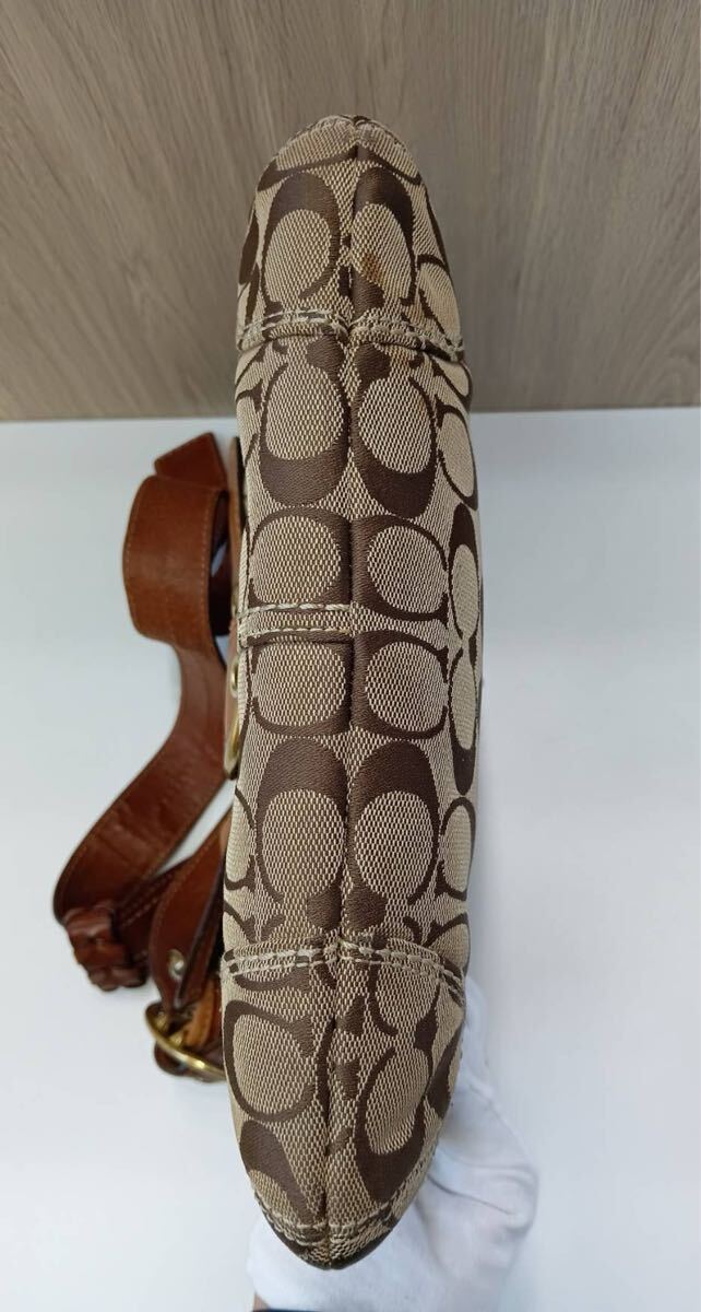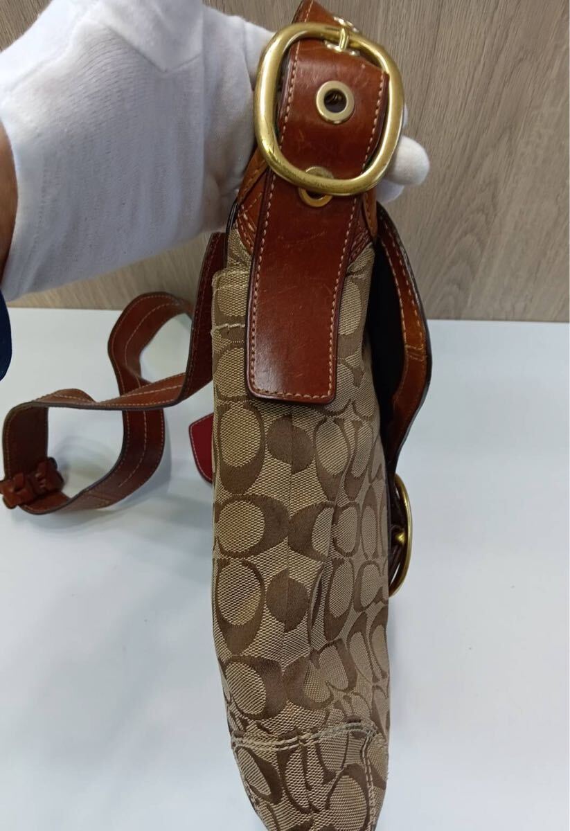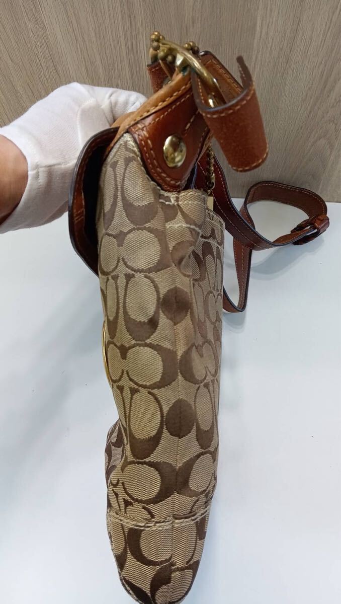 【中古品】 COACH コーチ ショルダーバッグ ブリーカー シグネチャー フラップダッフル キャンバス ブラウン ゴールド 現状品