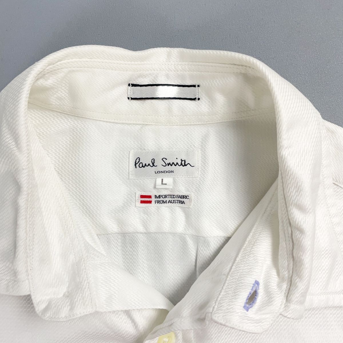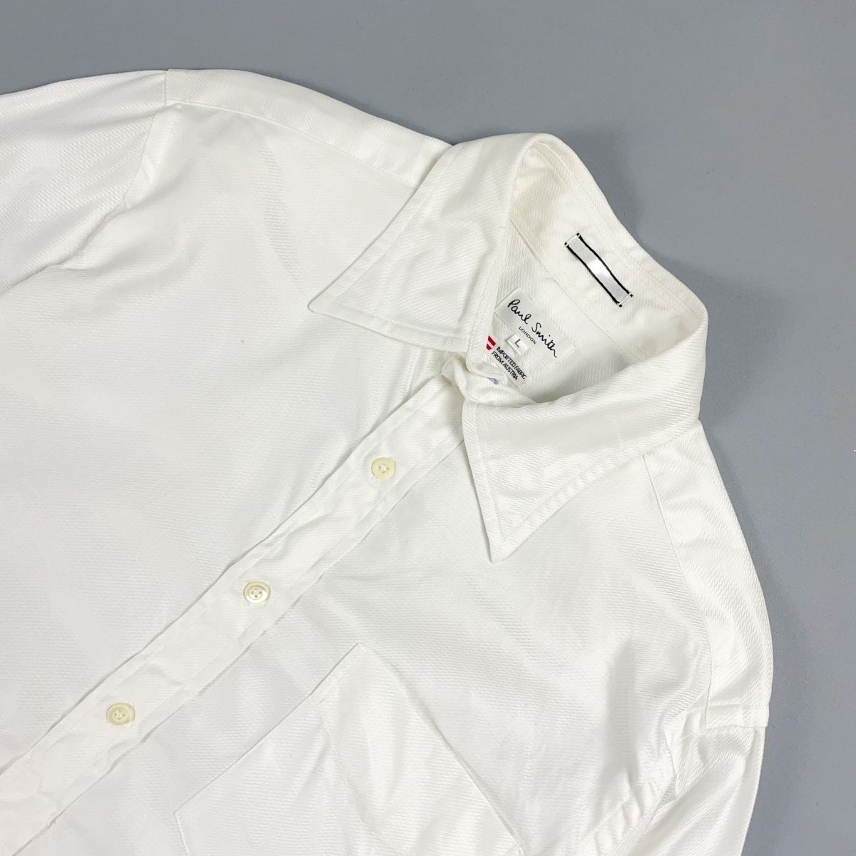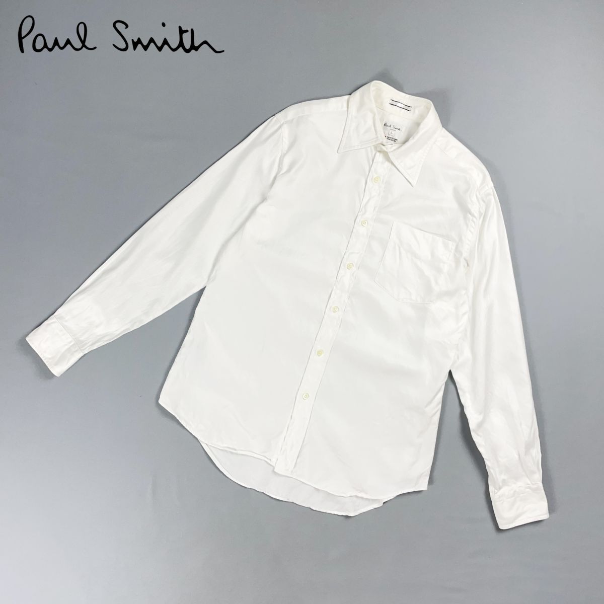 Paul Smith ポールスミス 長袖ワイシャツ 光沢感 厚手 胸ポケット付 メンズ 白 ホワイト サイズL*GD283