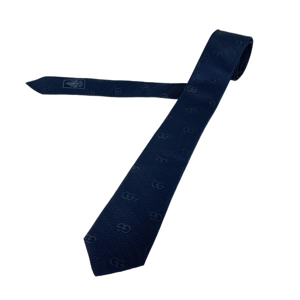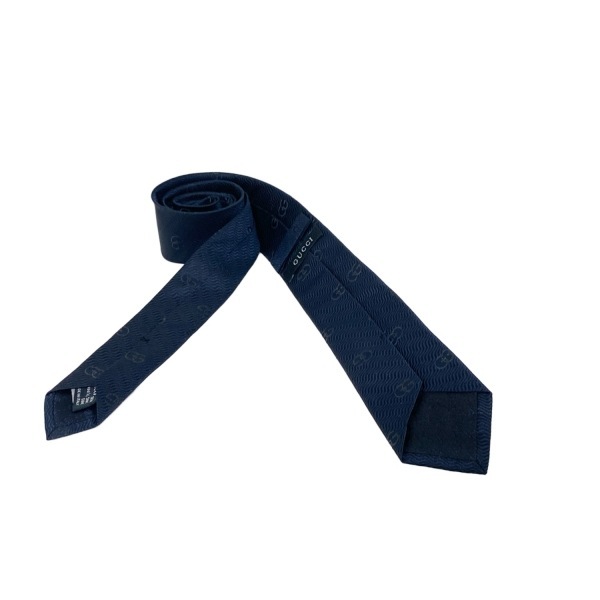 グッチ GUCCI - ダークネイビー×ダークグレー メンズ ダブルG 美品 ネクタイ