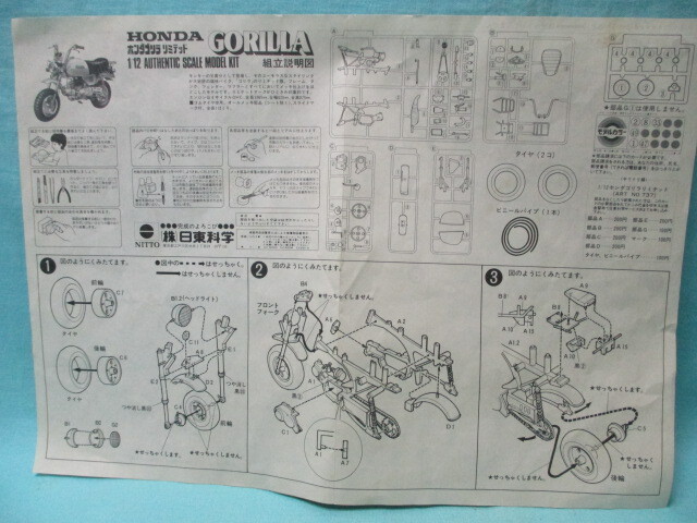 絶版 当時物 ジャンク ミラー部品1個欠品 ニットー/日東科学 NITTO 1/12 ホンダ ゴリラ Z50J-リミテッド メッキ仕様/開封.現状品 〒390円