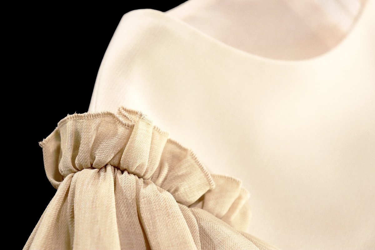 袖は内側にチュールを重ねたほんのり透ける素材になります。