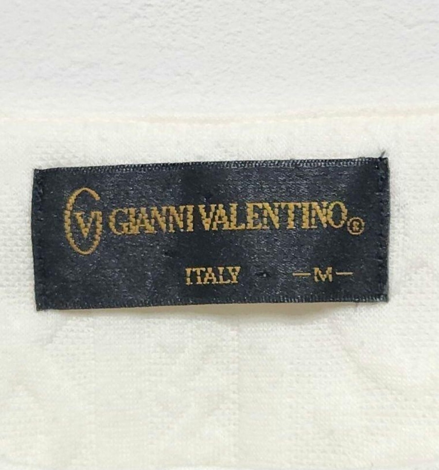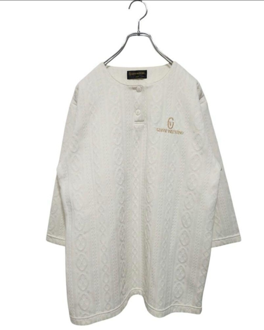 GIANNI VALENTINO ジャンニヴァレンチノ カットソー ヘンリーネック ロンT 長袖 M 白 ホワイト 刺繍ロゴ 古着