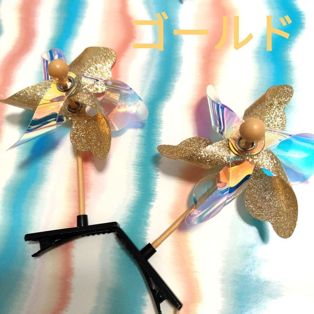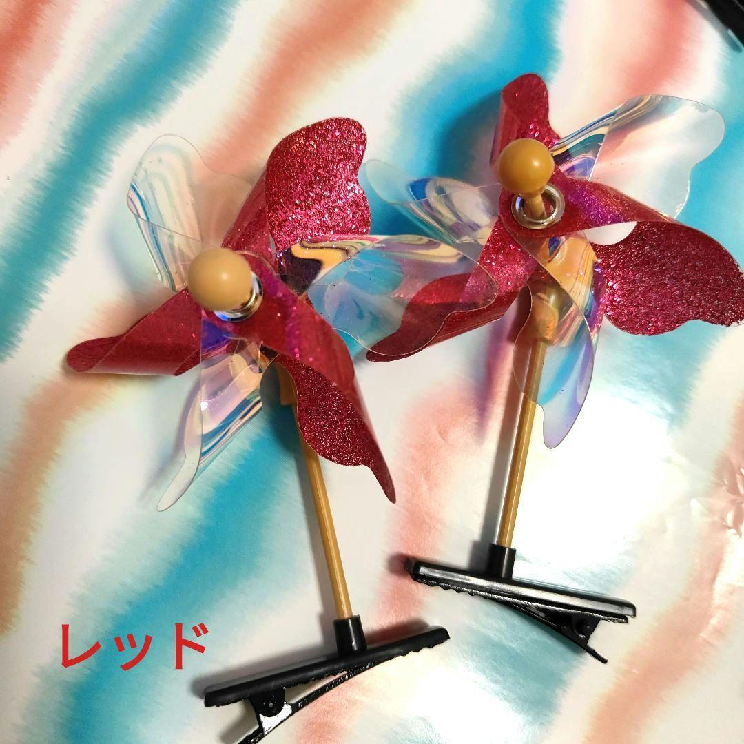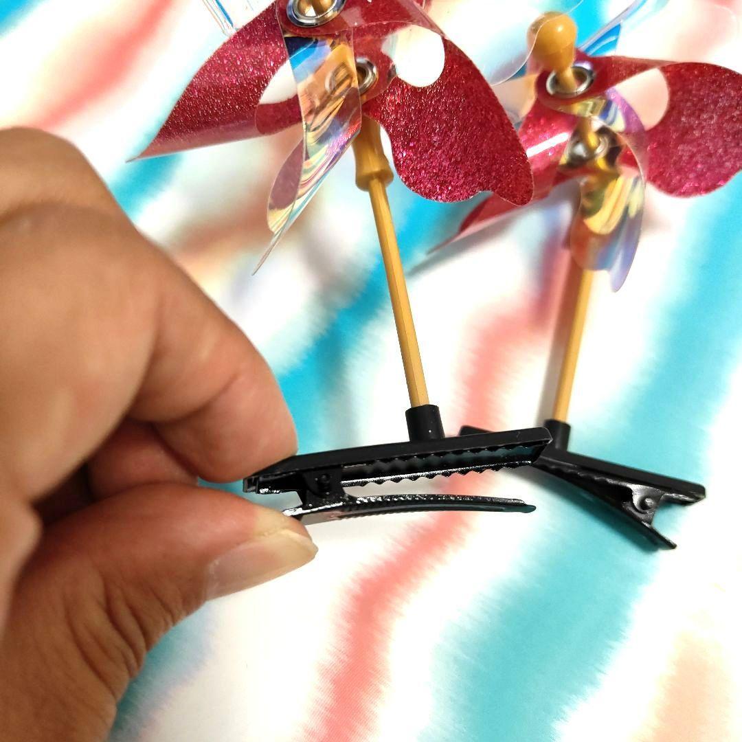 ②パーティーヘアクリップ 風車4組(4人分合計8個) 金、銀、赤、ピンク各1組