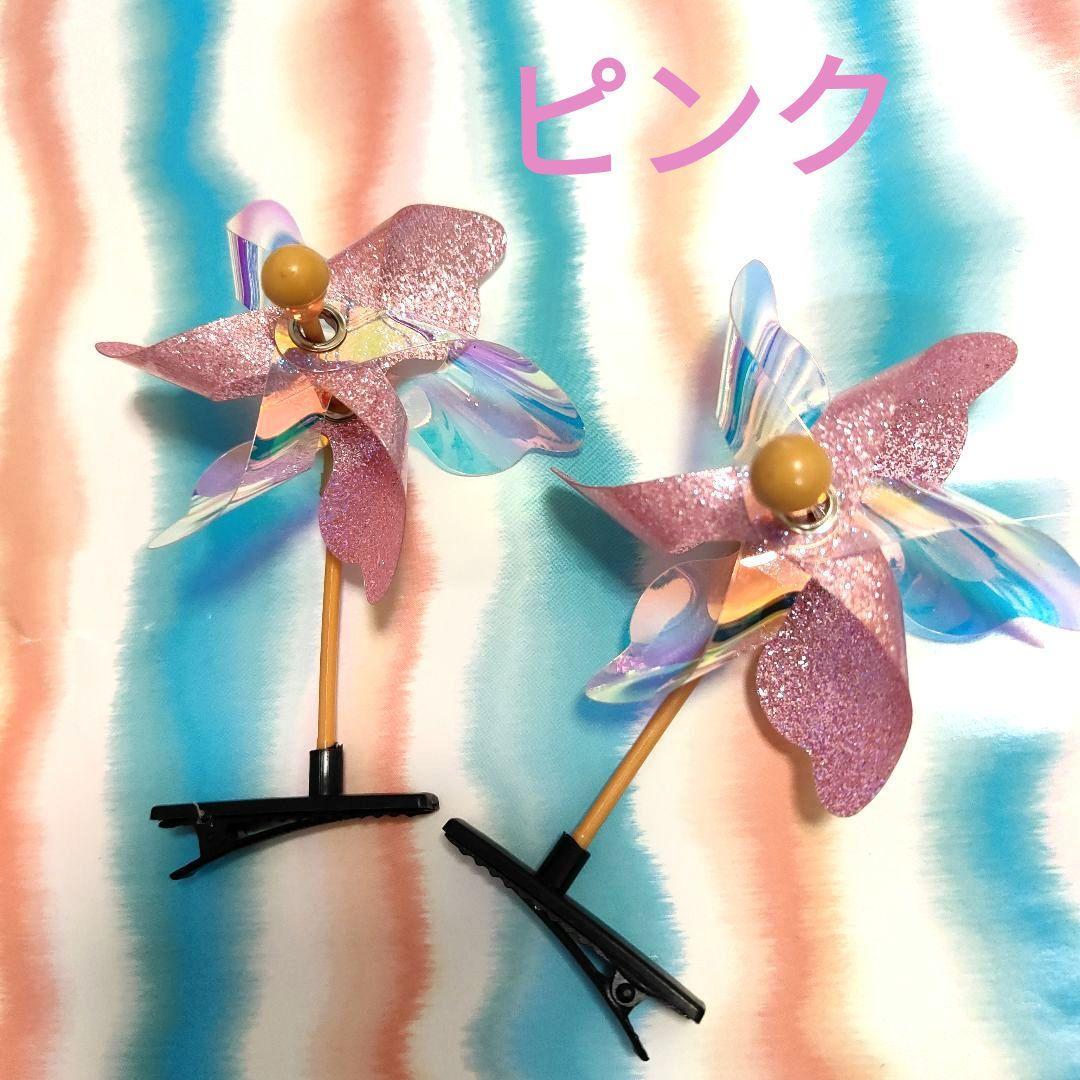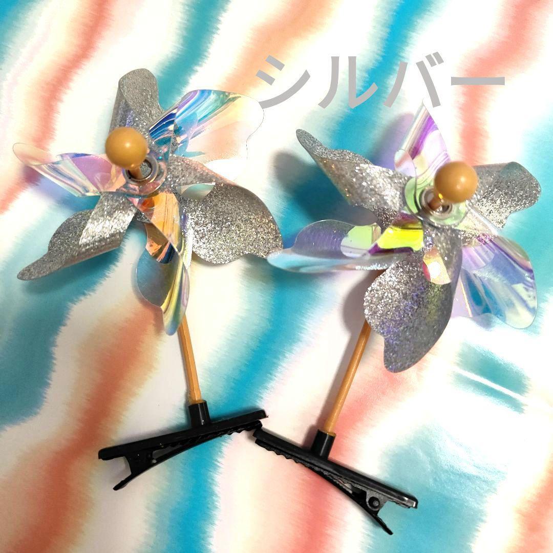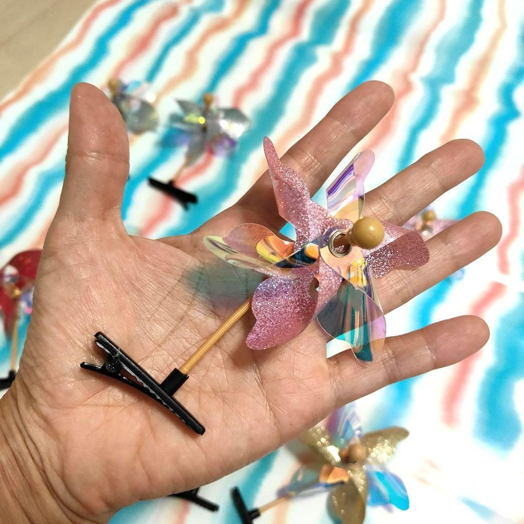 ②パーティーヘアクリップ 風車4組(4人分合計8個) 金、銀、赤、ピンク各1組