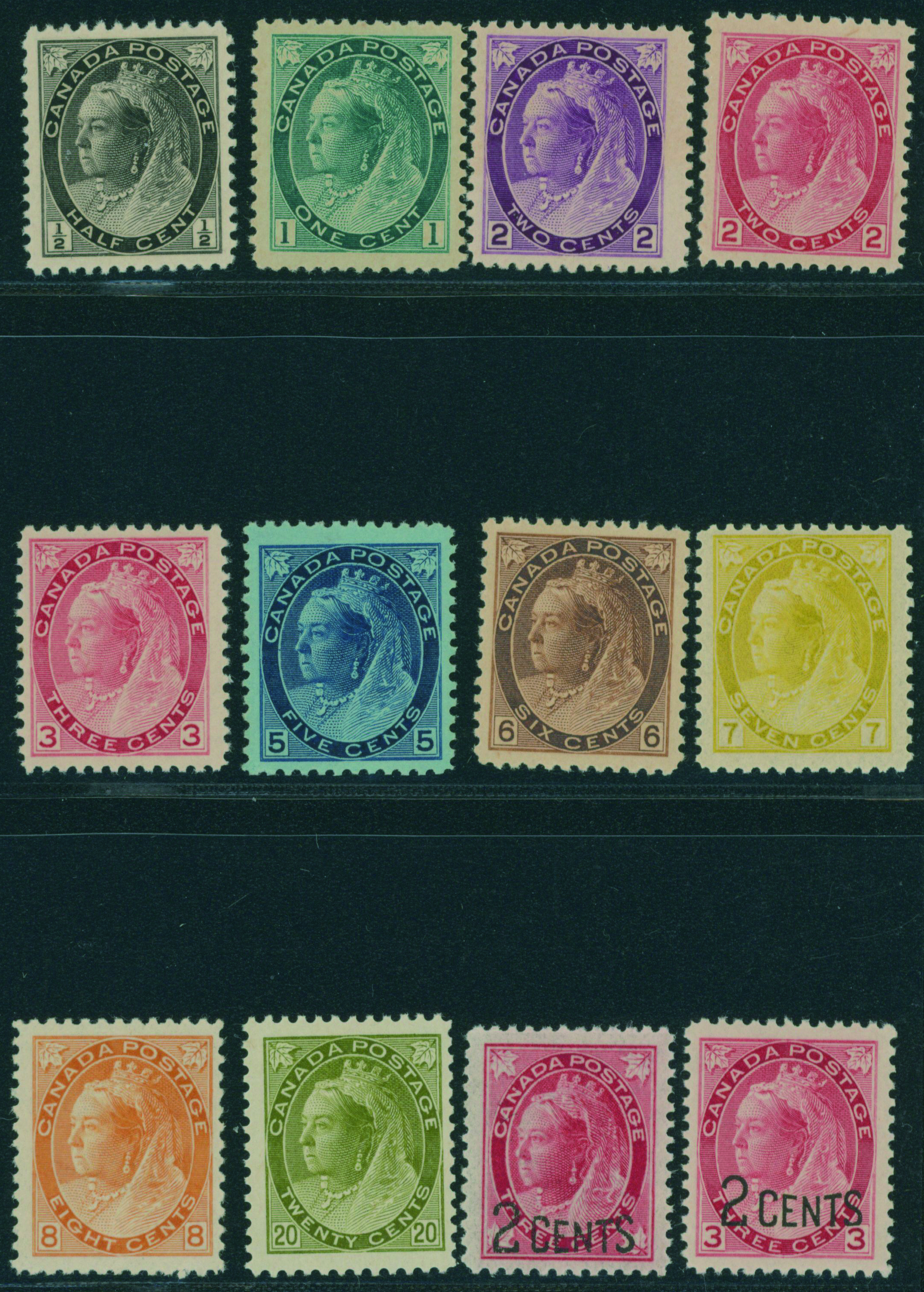 商品説明:カナダ 1898 0.5c-20c (10cを除く10種), 1899 2c on 3c(2種), 未使用 ヒンジ跡軽い 切手12枚 カタログ価:270,000円SCOTT 74/88,