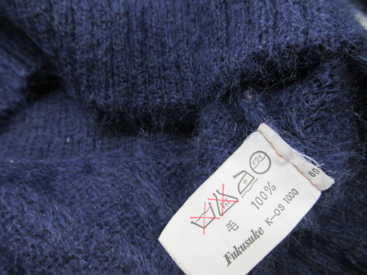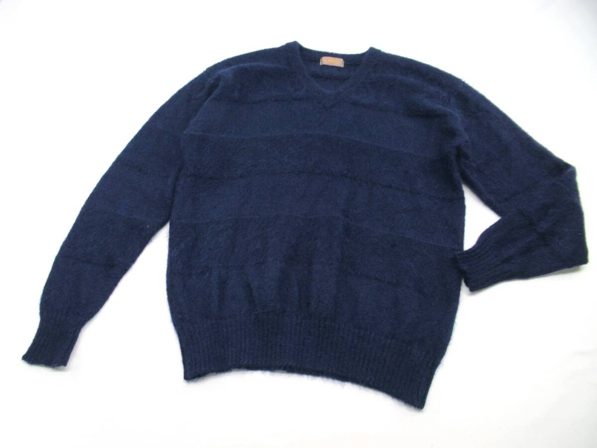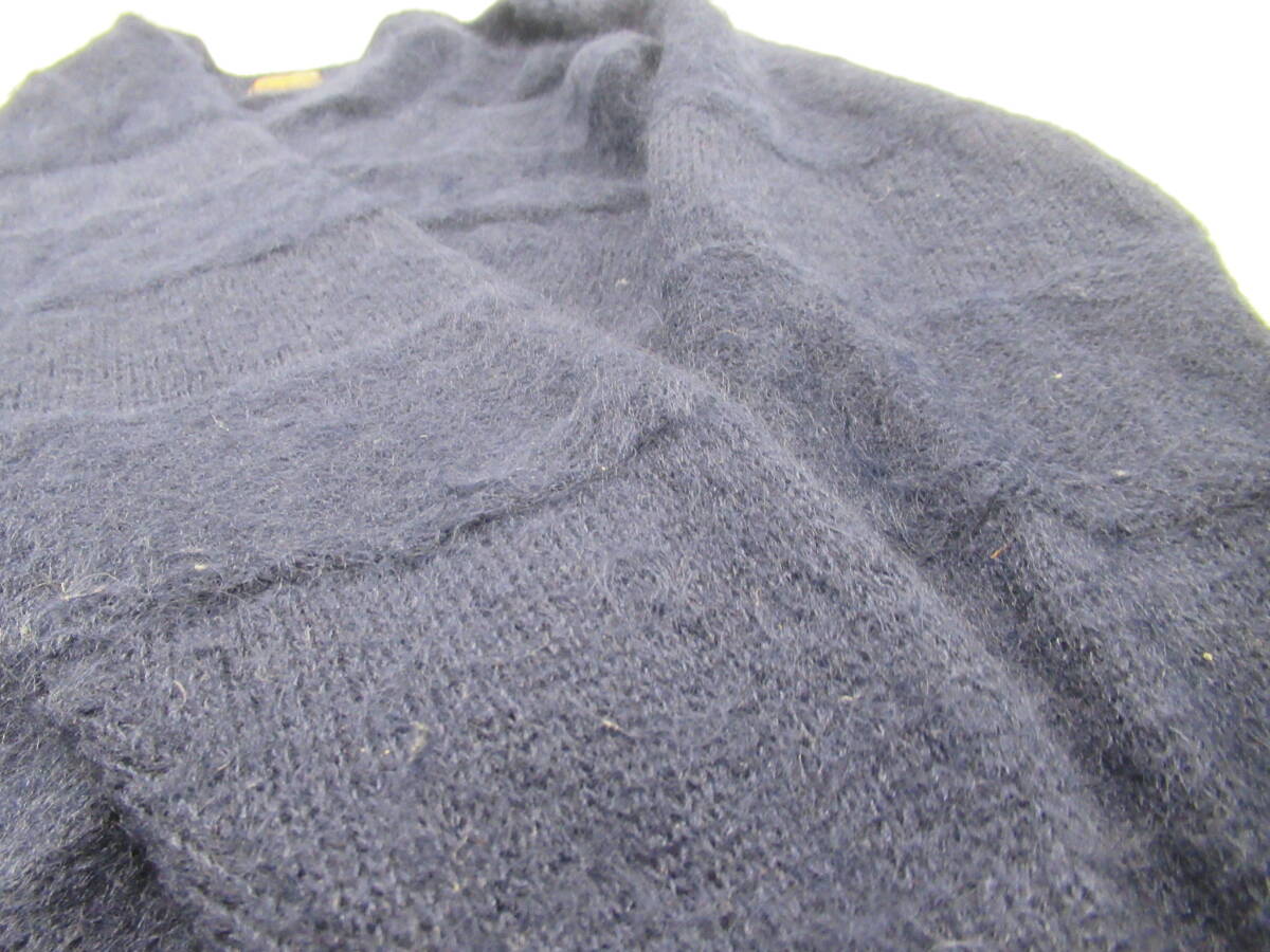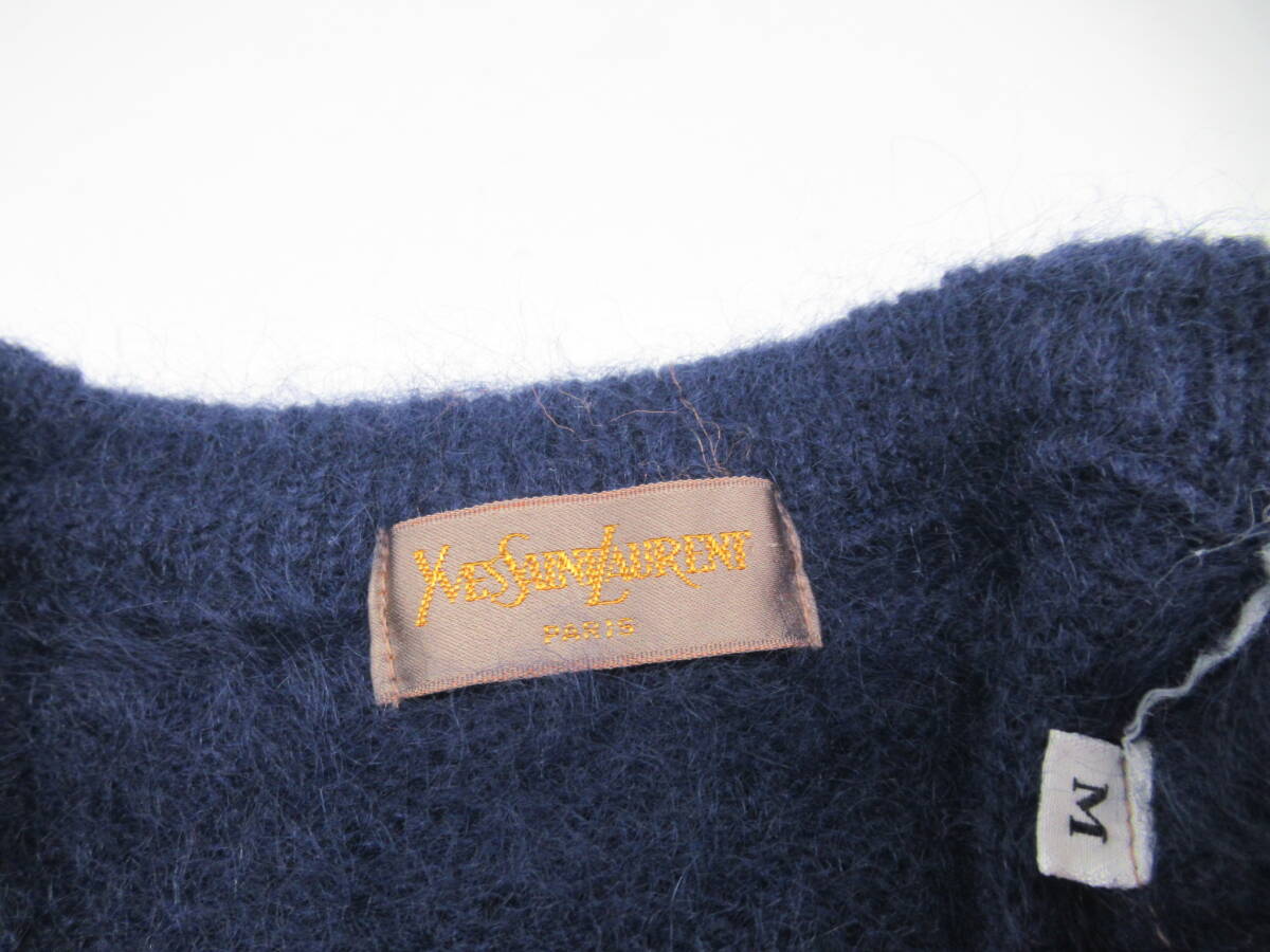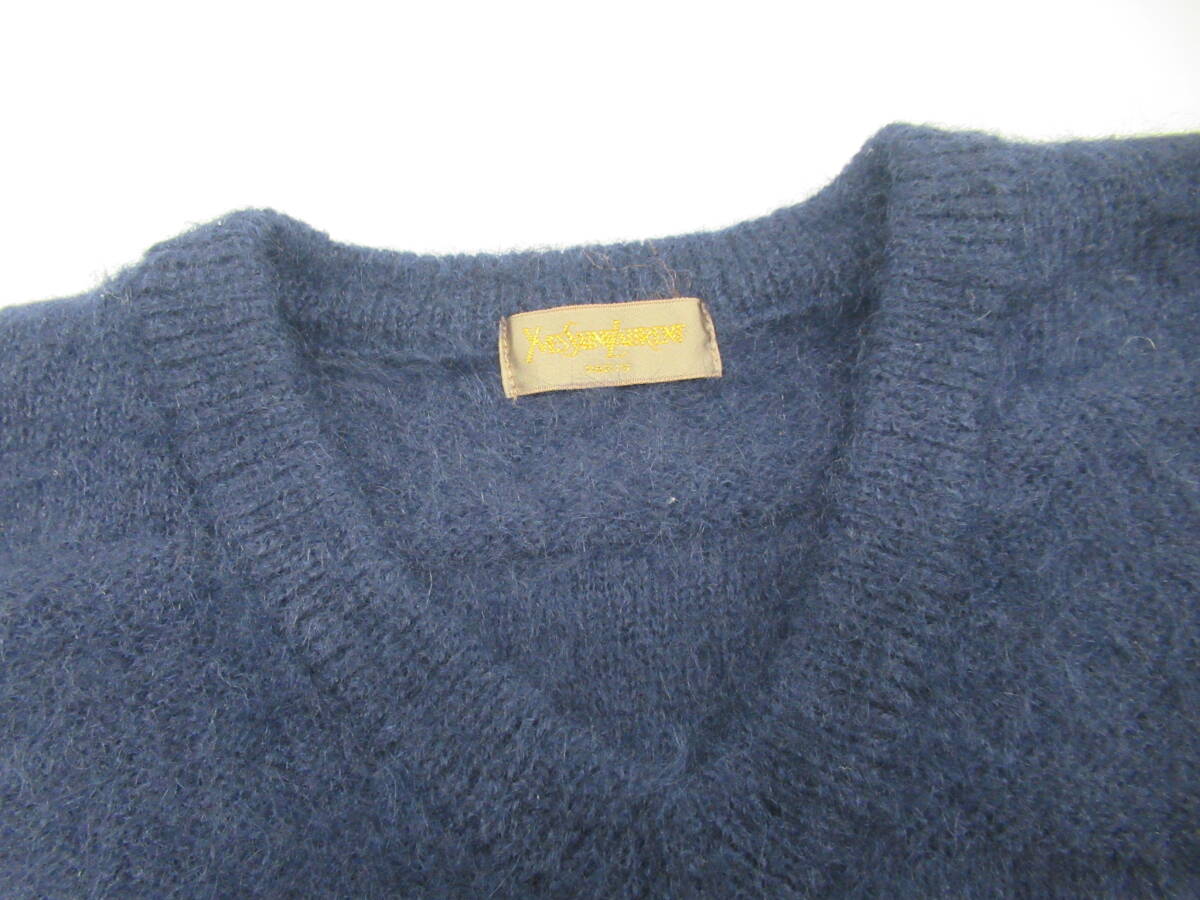 ★【S送900円】2764 YVES SAINT LAURENT イヴサンローラン ヴィンテージ シャギーニット セーター Vネック ネイビー M 毛100%